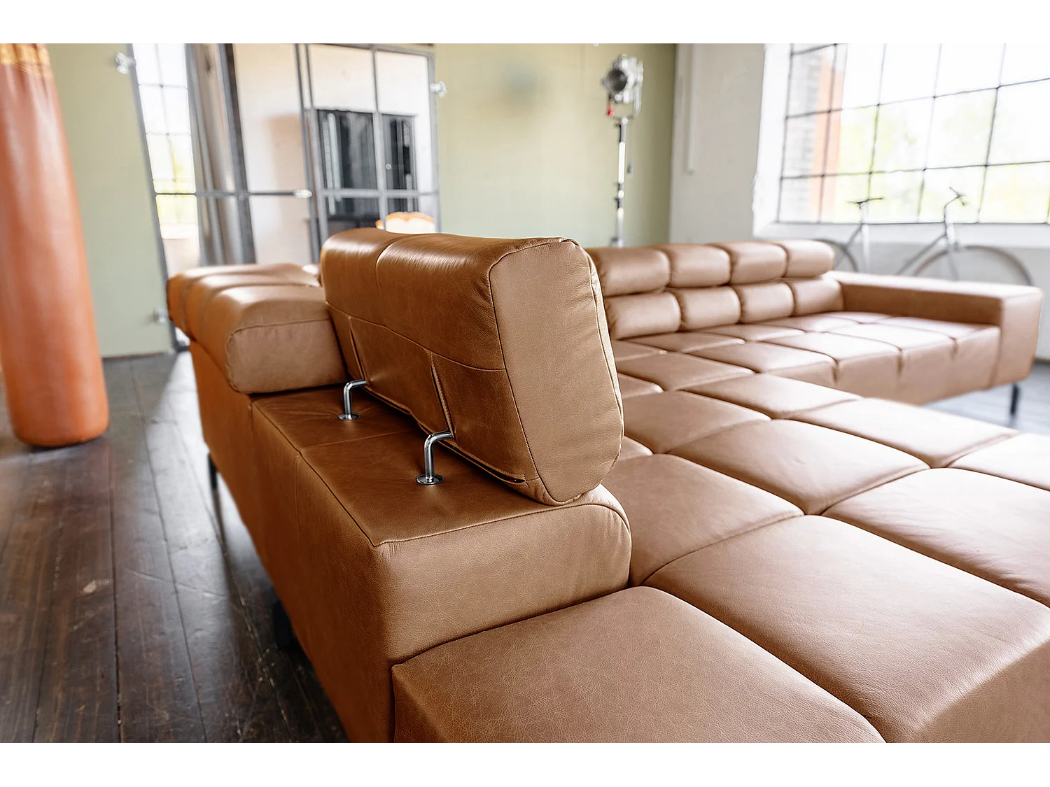 Canapé Angle à Droite en Cuir Marron Dossier Matelassé Housses Amovibles Oslo