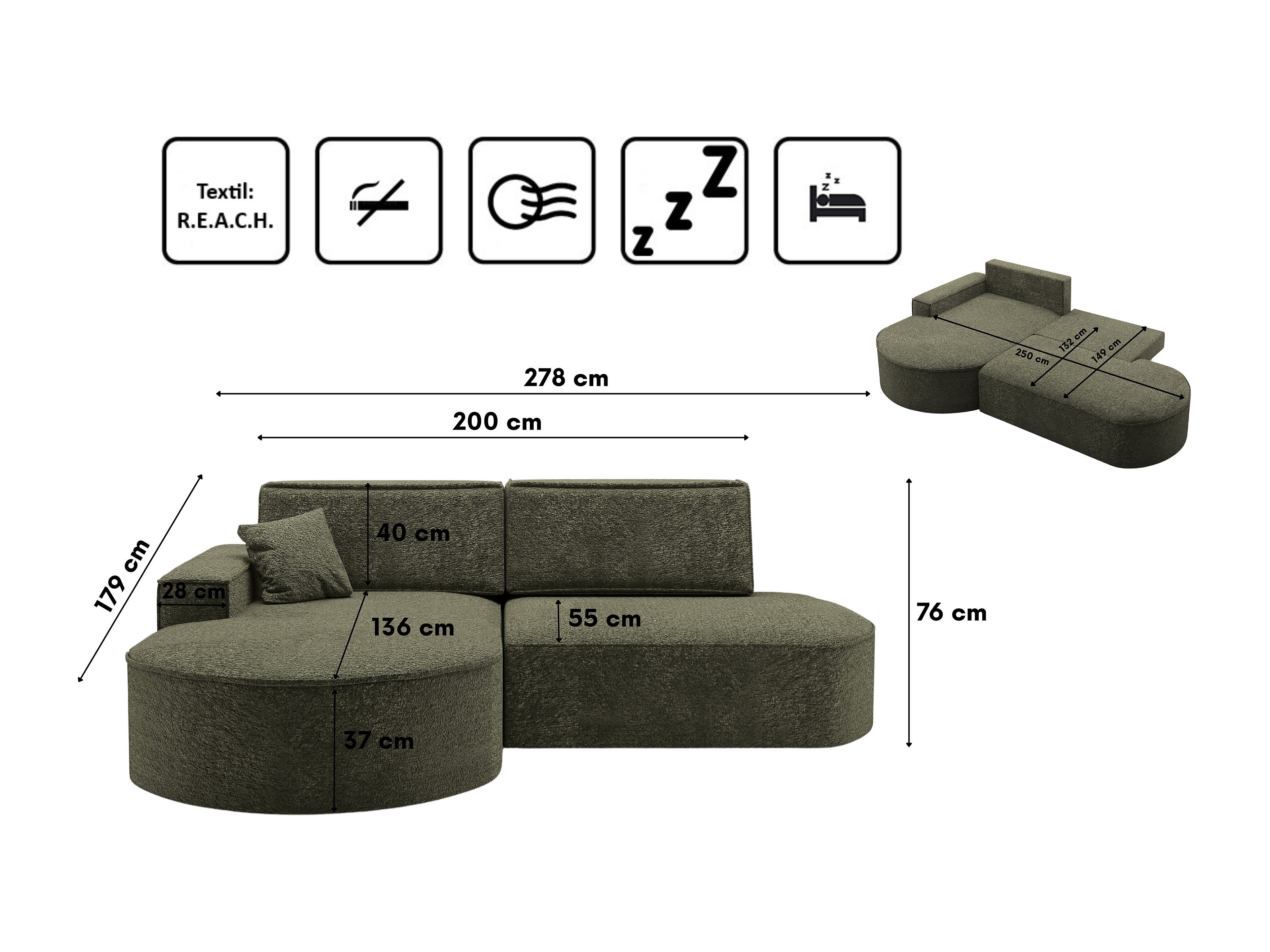 Canapé d'angle Modena Pro - confort et style dans un design moderne tissu Arena Green Left