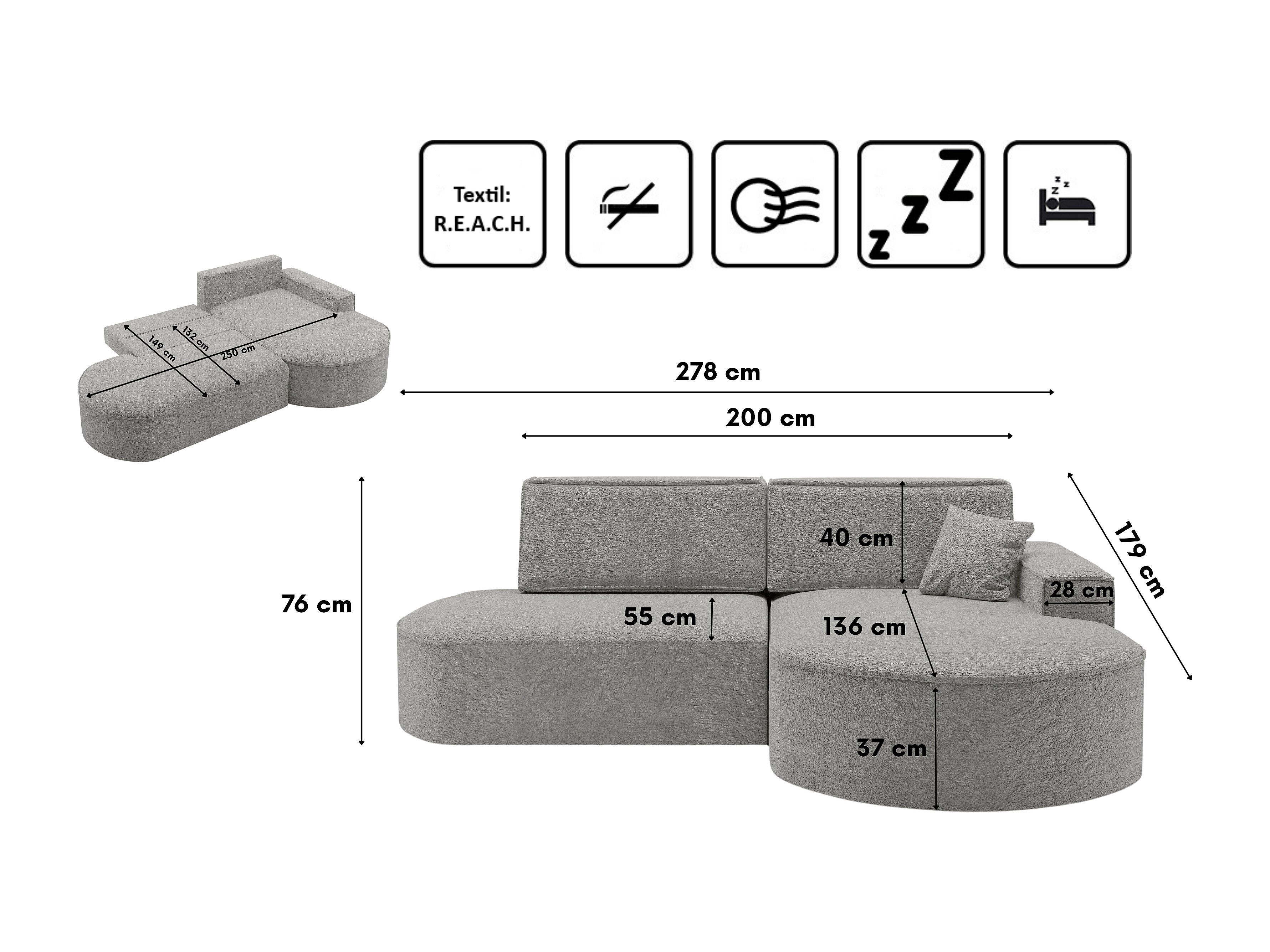 Canapé d'angle Modena Pro - confort et style dans un design moderne tissu Arena Grey Right