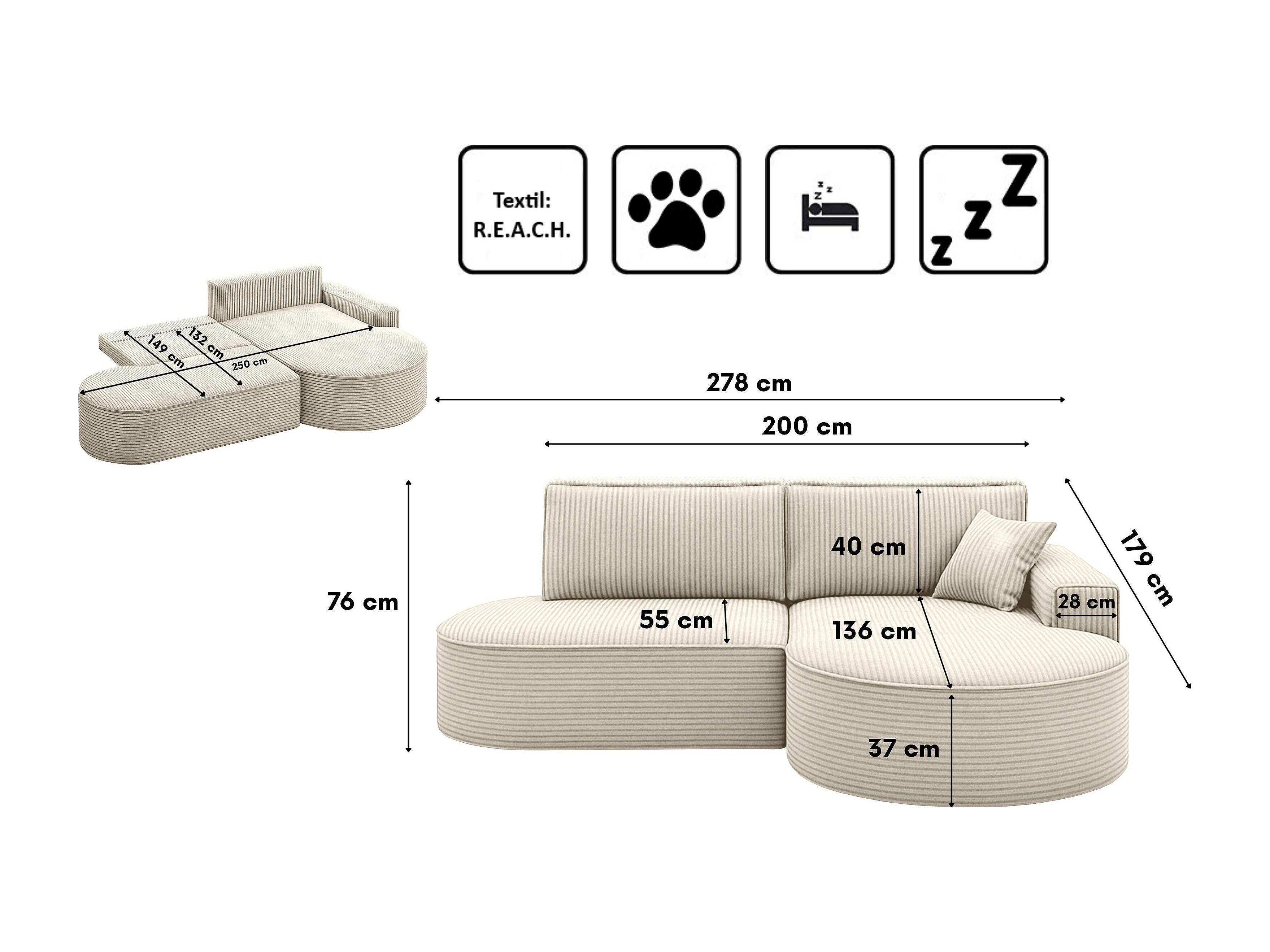 Canapé d'angle Modena Pro - Confort et style dans un tissu au design moderne Poso Beige Droite