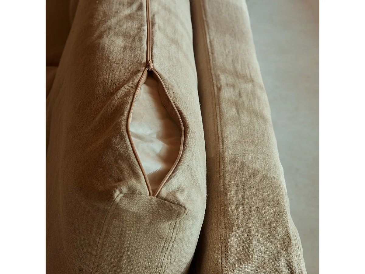 Canapé d’angle modulable en lin naturel, 3 Places