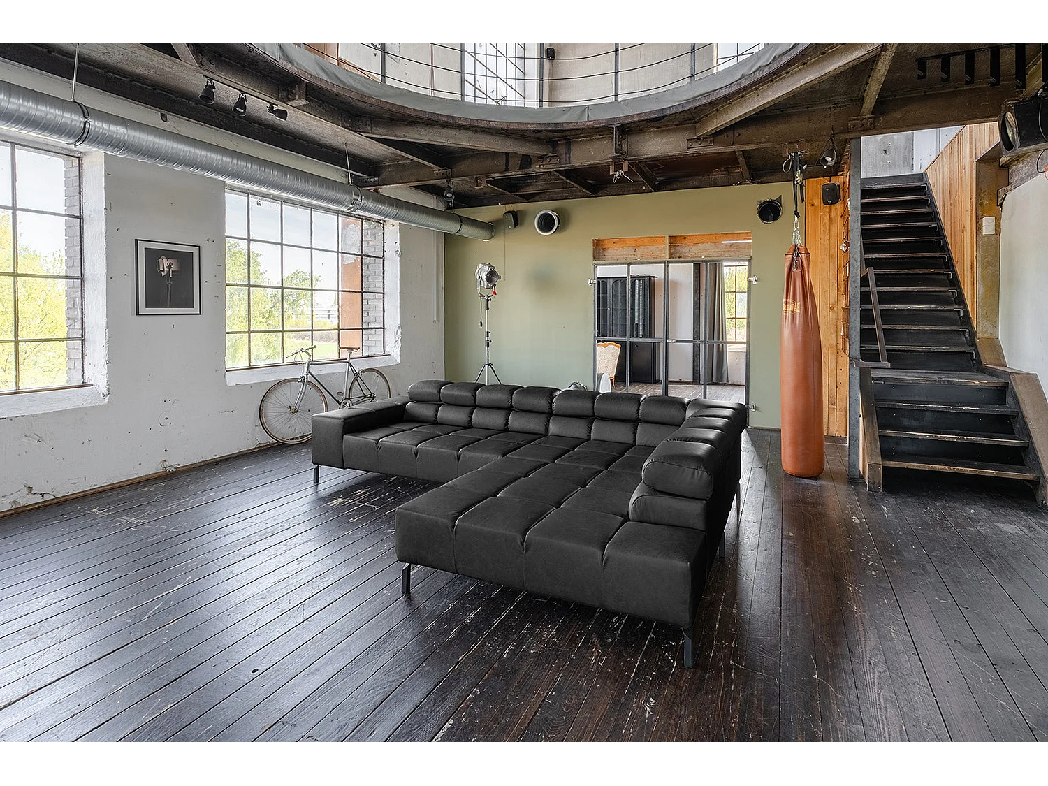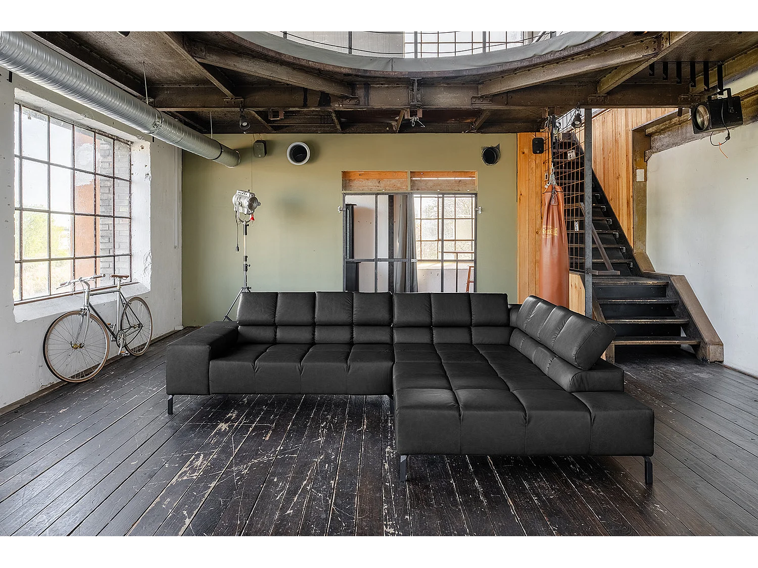 Canapé d'angle cuir noir