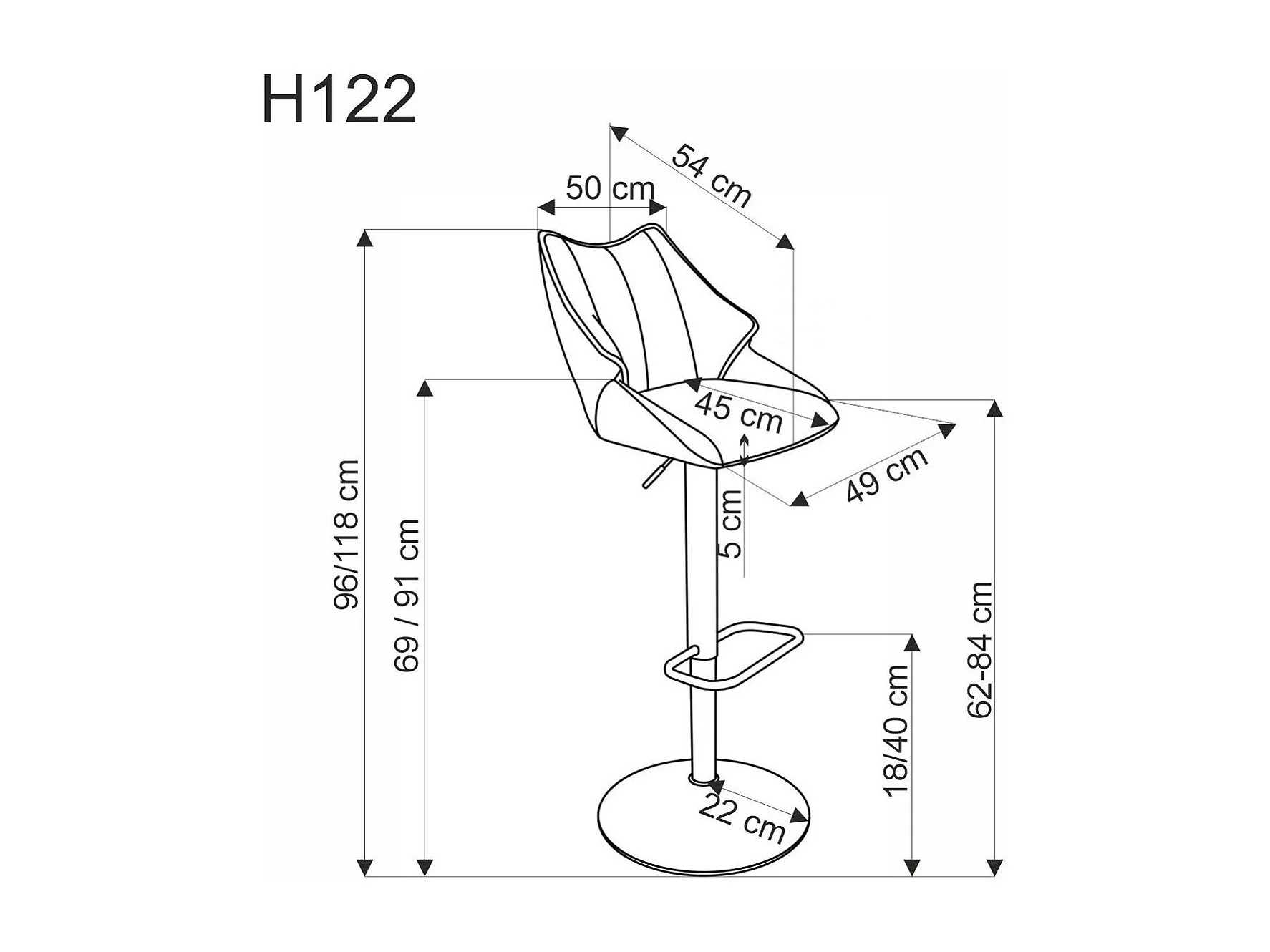 Tabouret de bar H122/revêtement tissu/métal/Gris