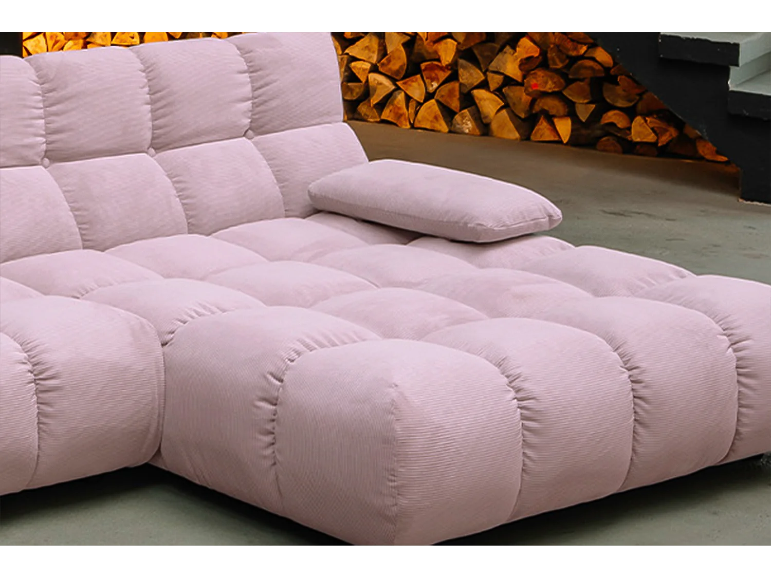 Canapé d'angle - Rose Velours côtelé - LAISKA