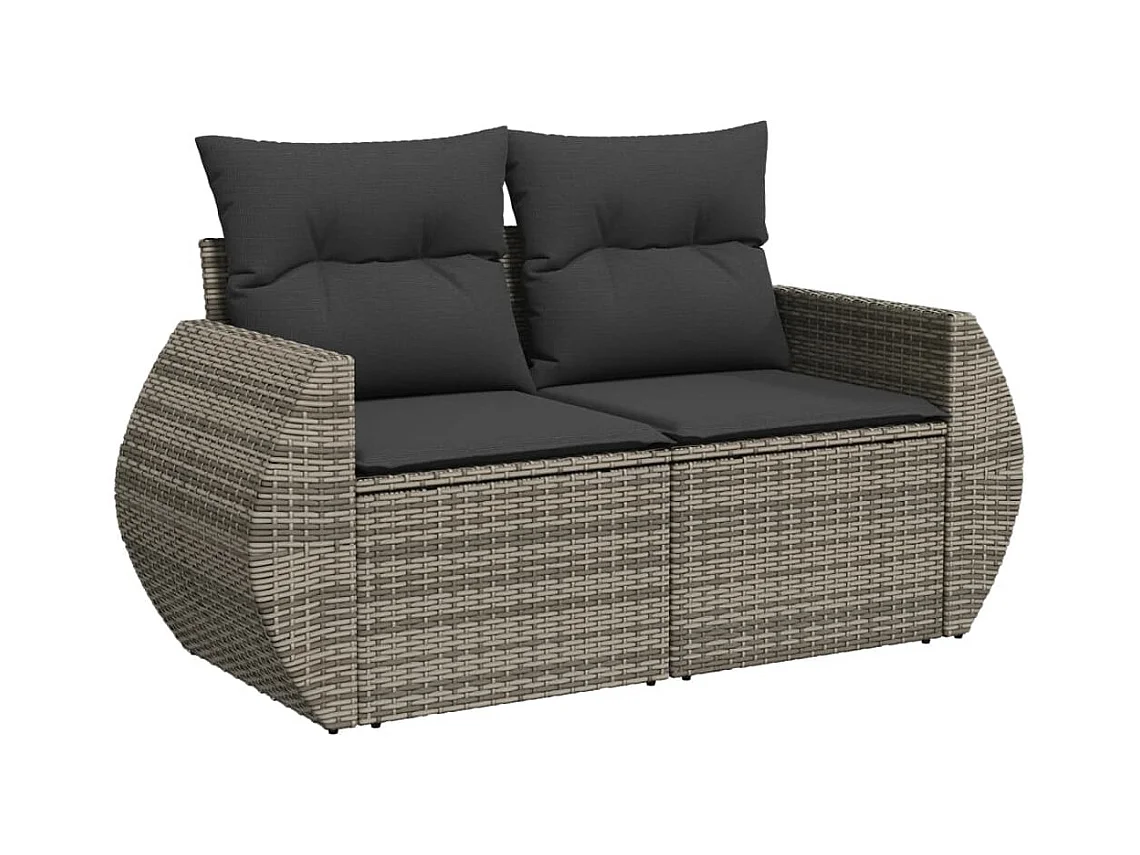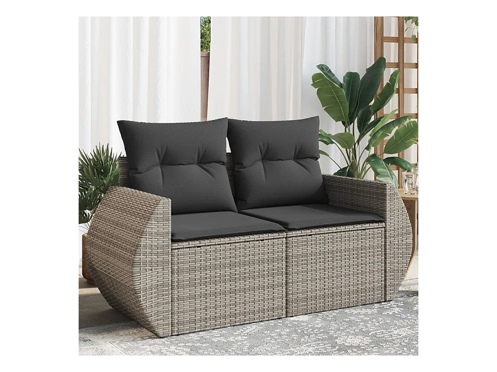 Canapé de jardin 2 places avec coussins gris résine tressée