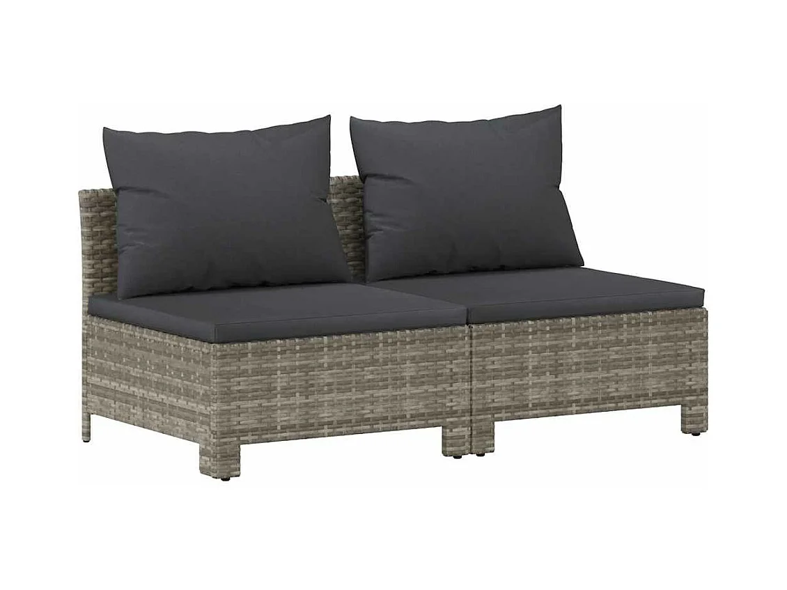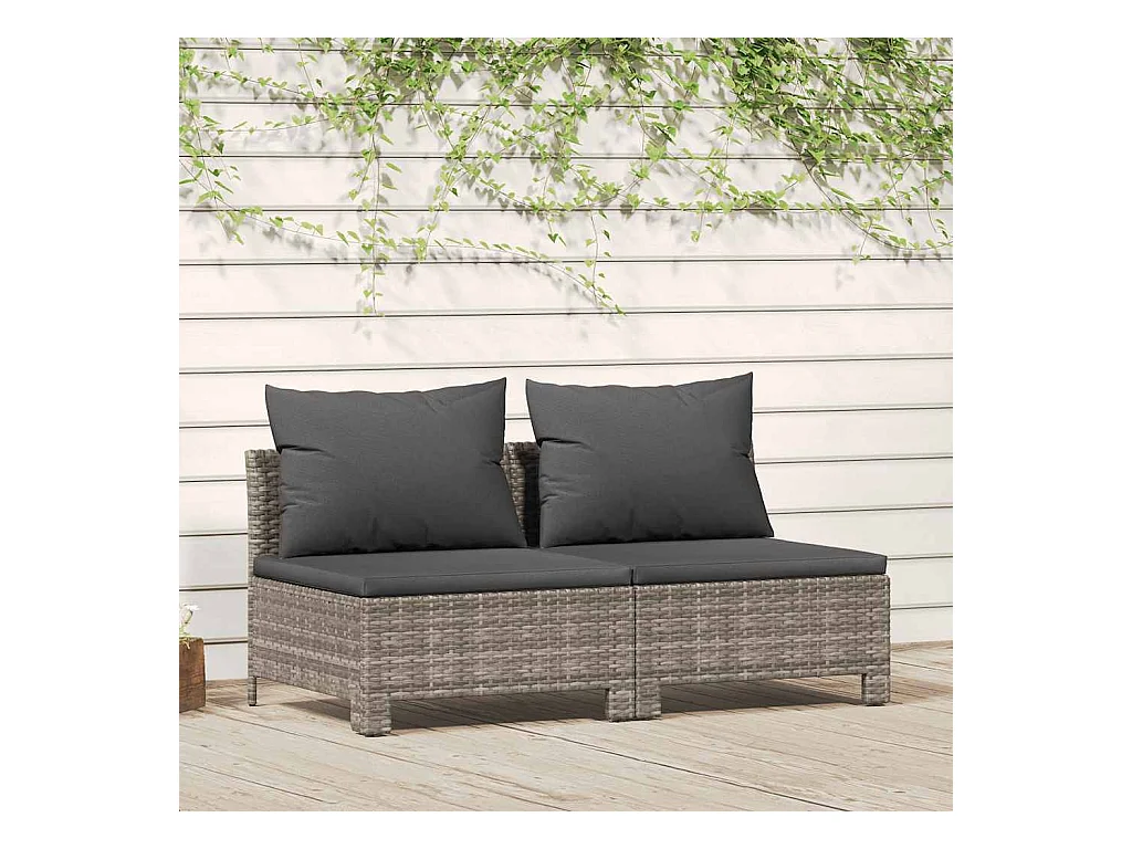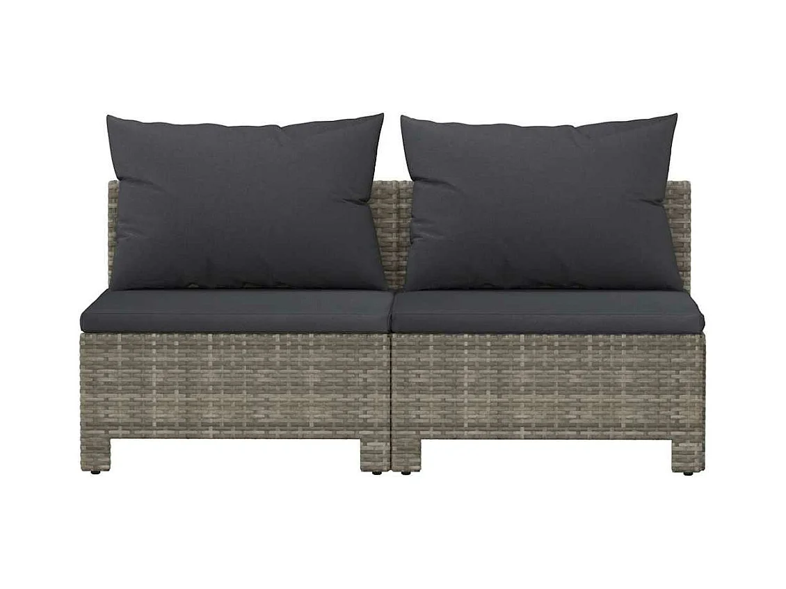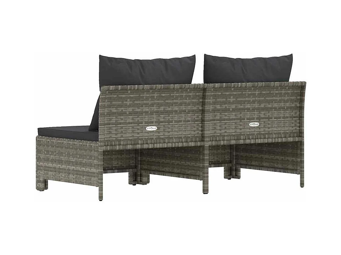 Canapé de jardin 2 places avec coussins Gris Résine tressée