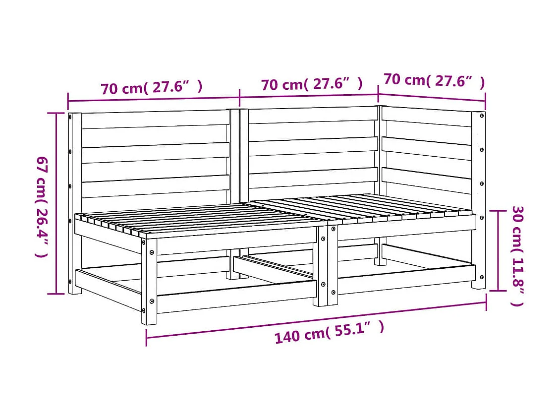 Canapé d'angle de jardin et coussins 73x73x78cm bois pin massif