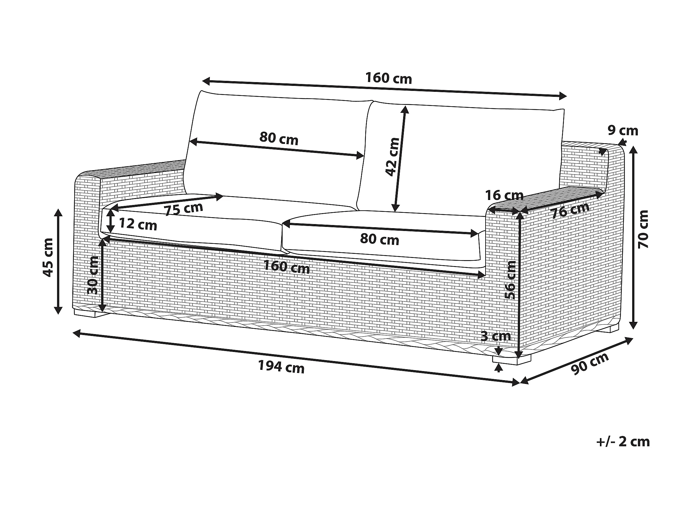 Canapé de jardin 2 places ARDEA Rotin Marron clair