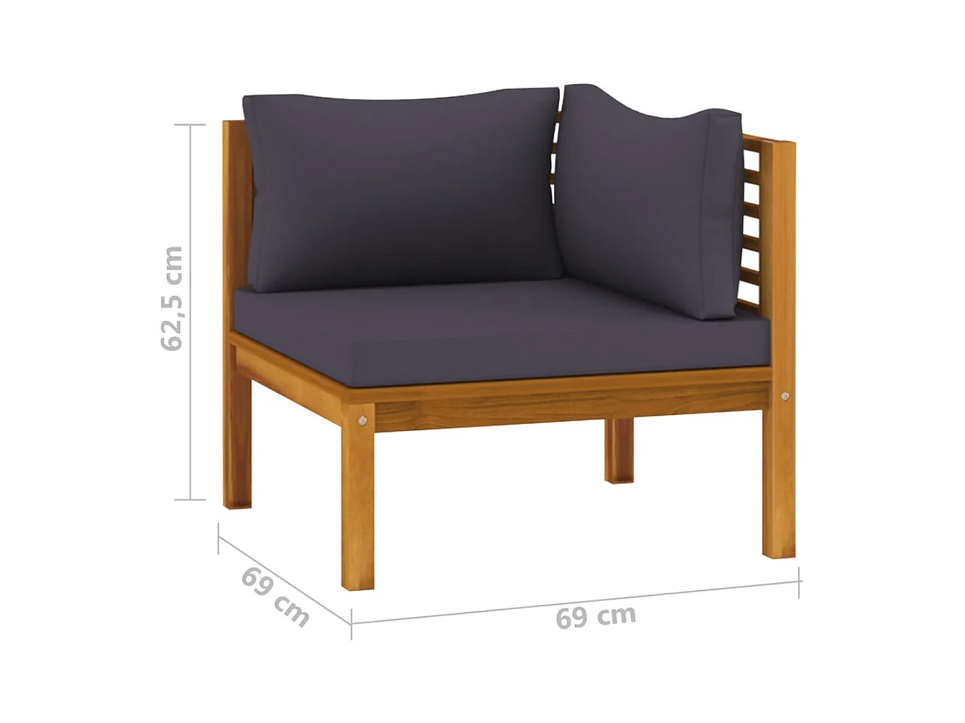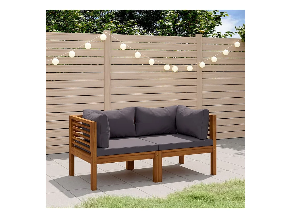 Canapé 2 places avec coussins gris foncé Bois d'acacia massif