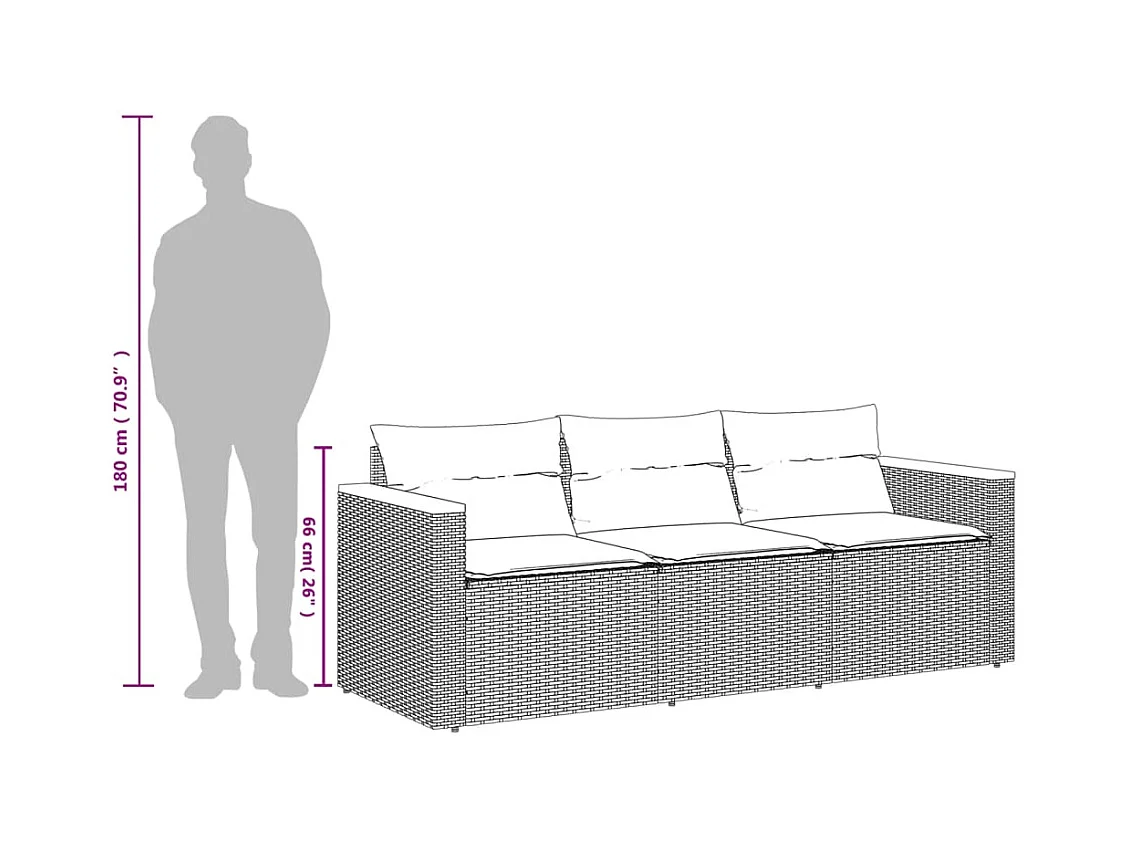 Canapé de jardin avec coussins 3 places beige résine tressée
