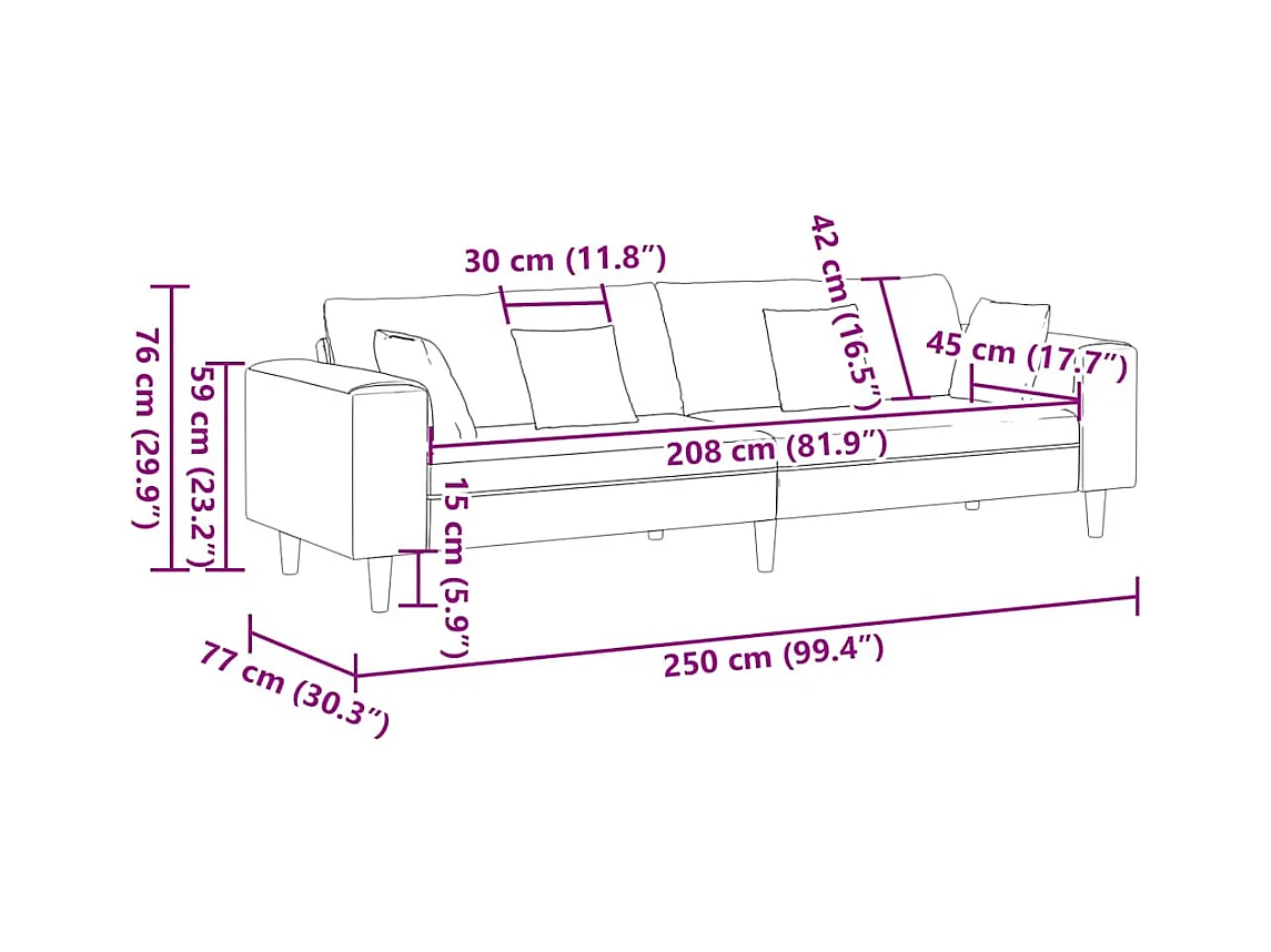 Canapé en velours avec coussin Gris clair 208 cm Velours
