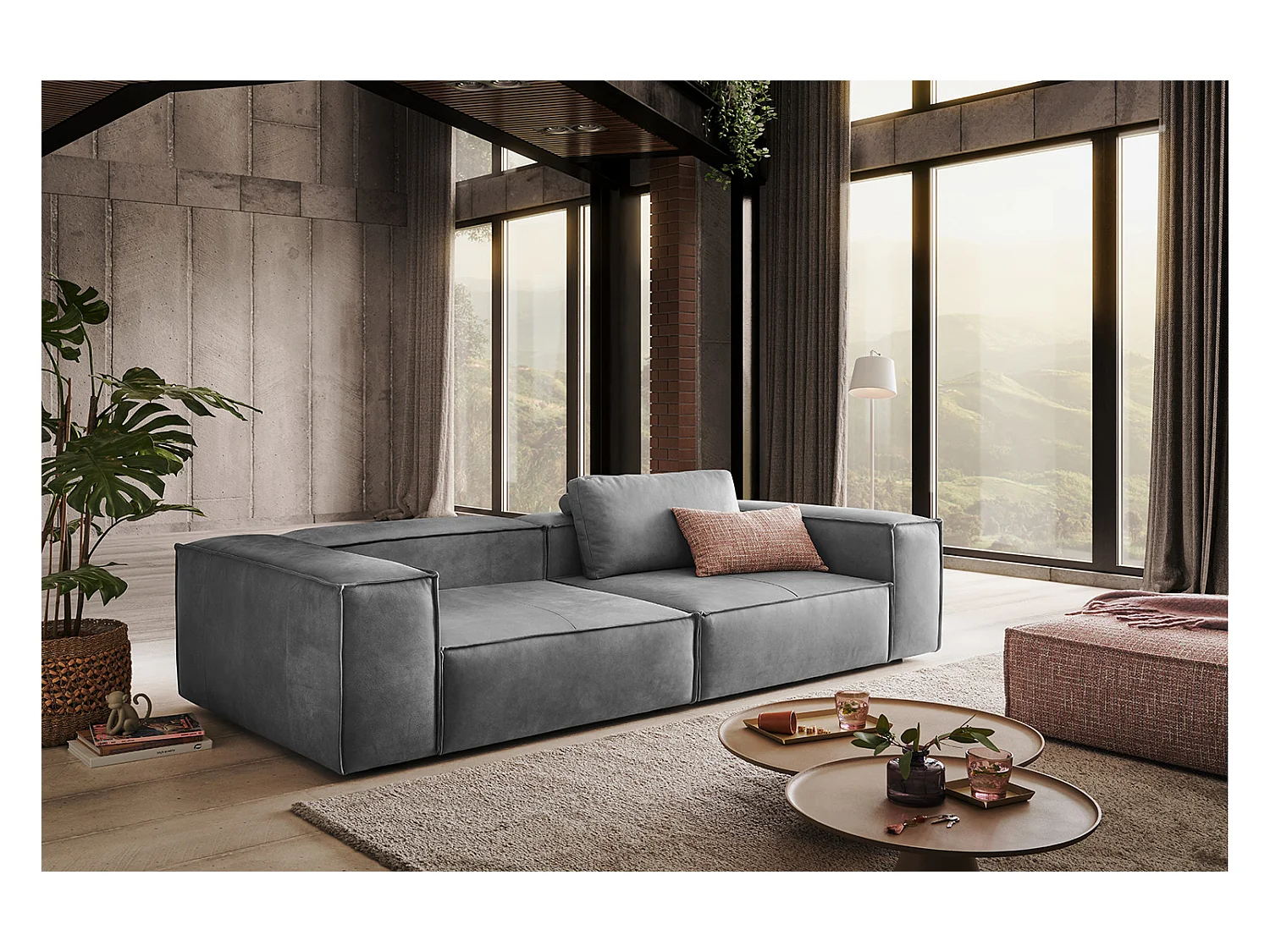 Canapé - Gris cuir - CARMO