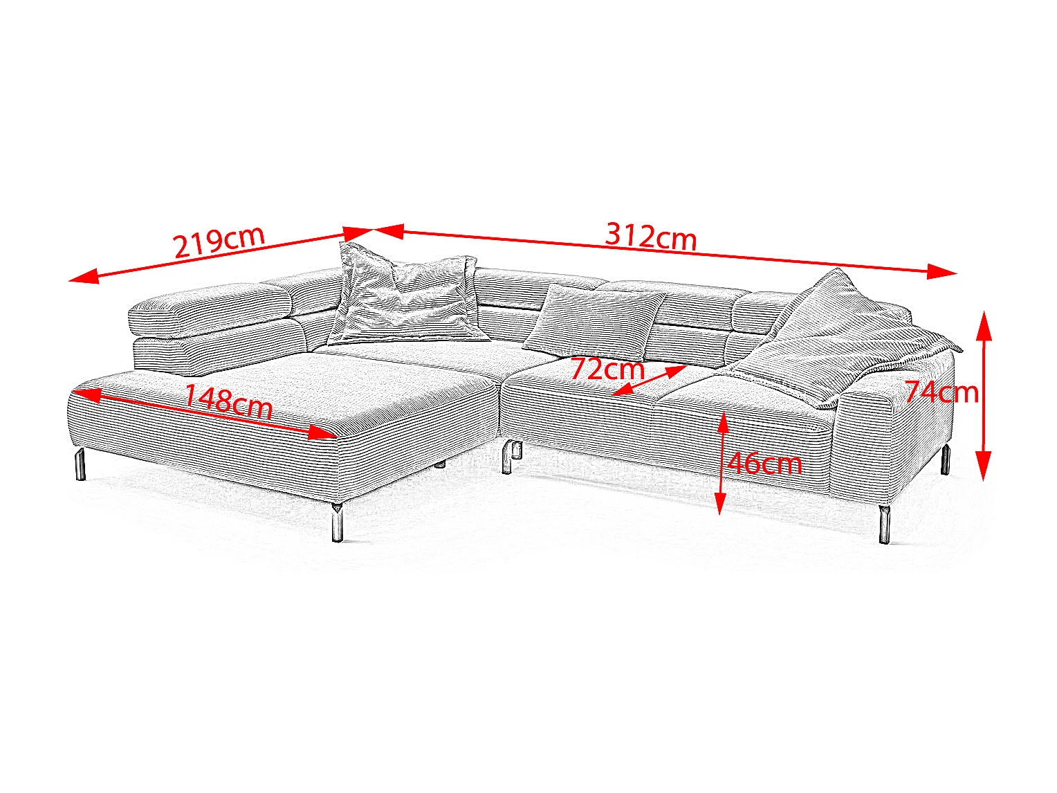 Canapé - gris pierre Velours côtelé - DELIA