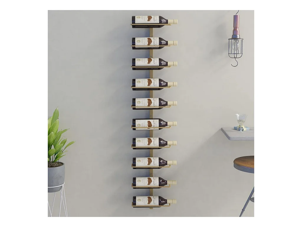 Casier à vin mural pour 10 bouteilles Doré Fer