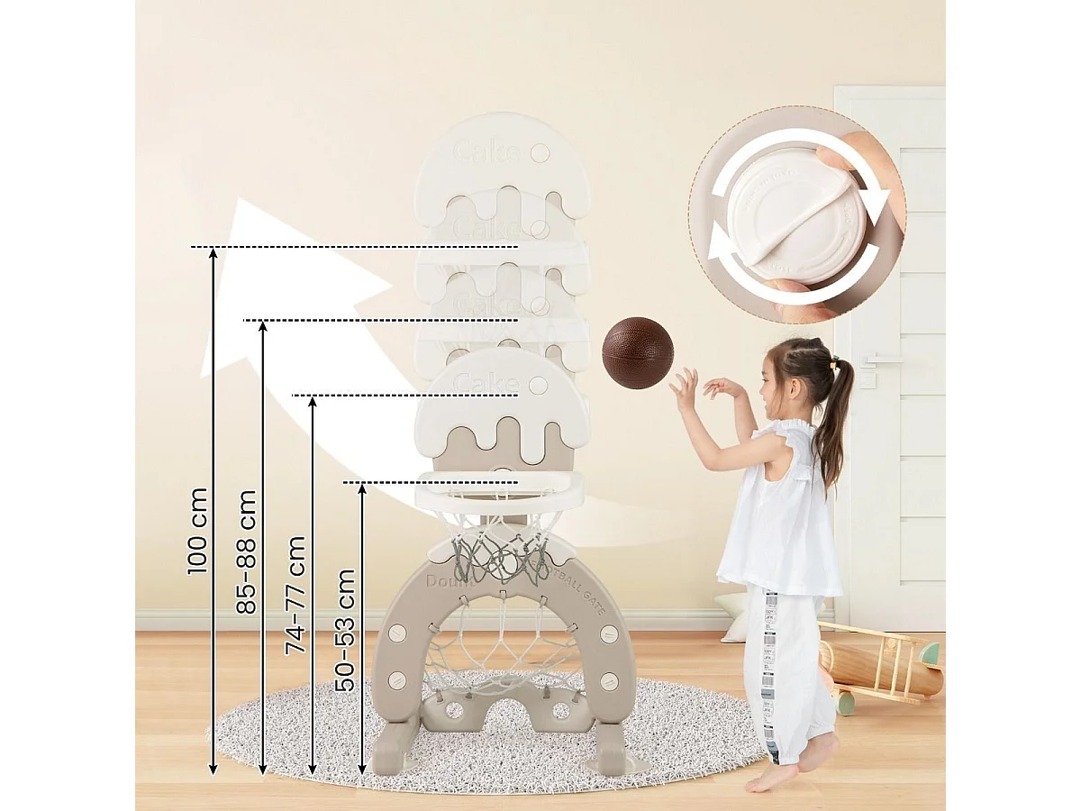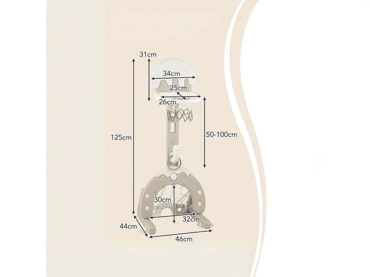 Centre d'Activités 4 en 1 pour Enfants de 3-10 Ans avec Panier de Basket-Ball But de Football Golf Lancer d'Anneaux Réglable en Hauteur Gris