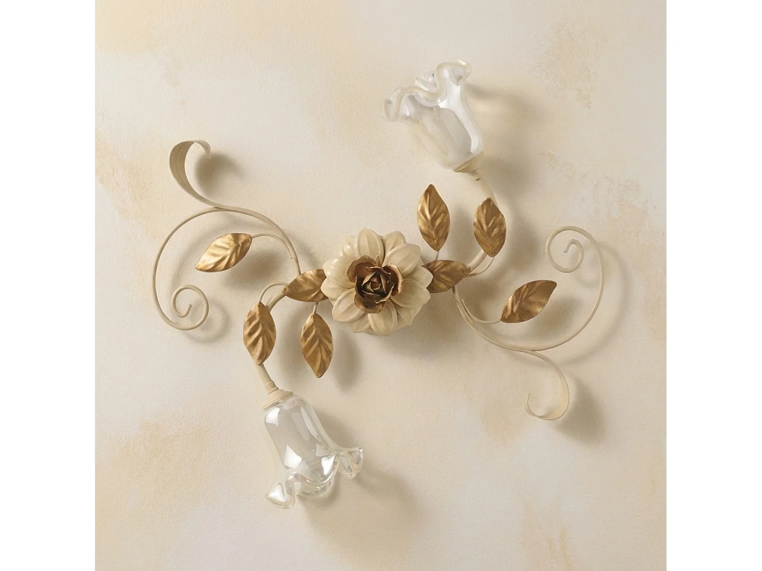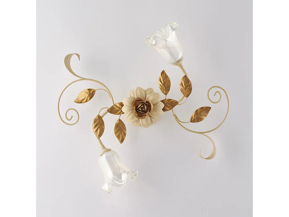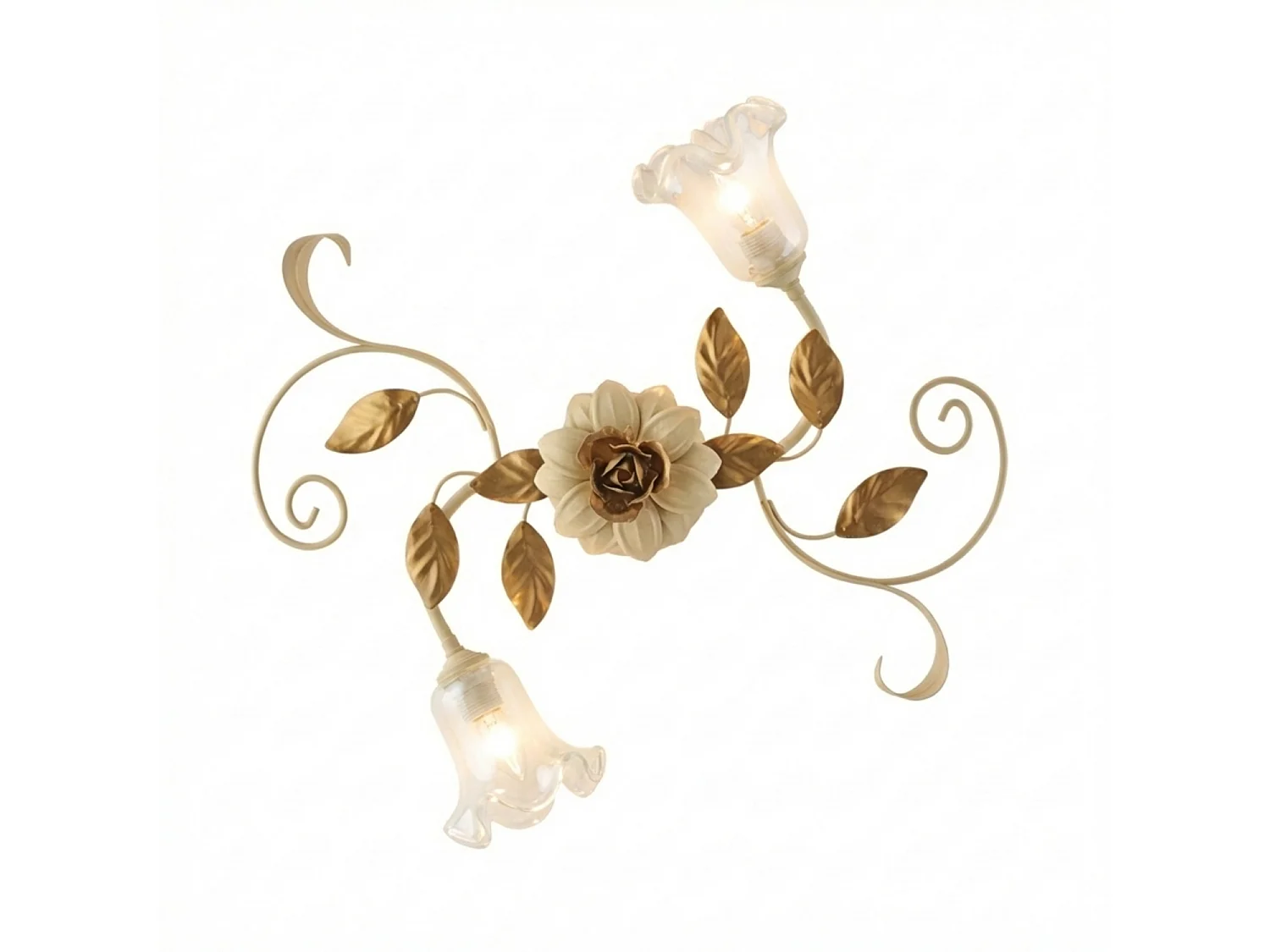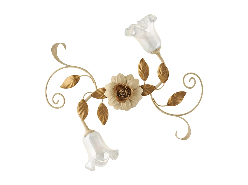 Cesto Plafonnier en fer laqué décapé ivoire 2 lumières H.17 d.52 BL274-PL2-AV