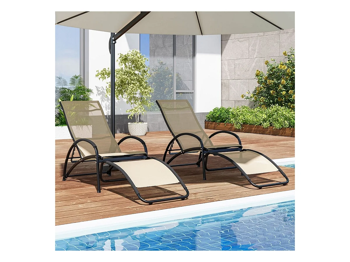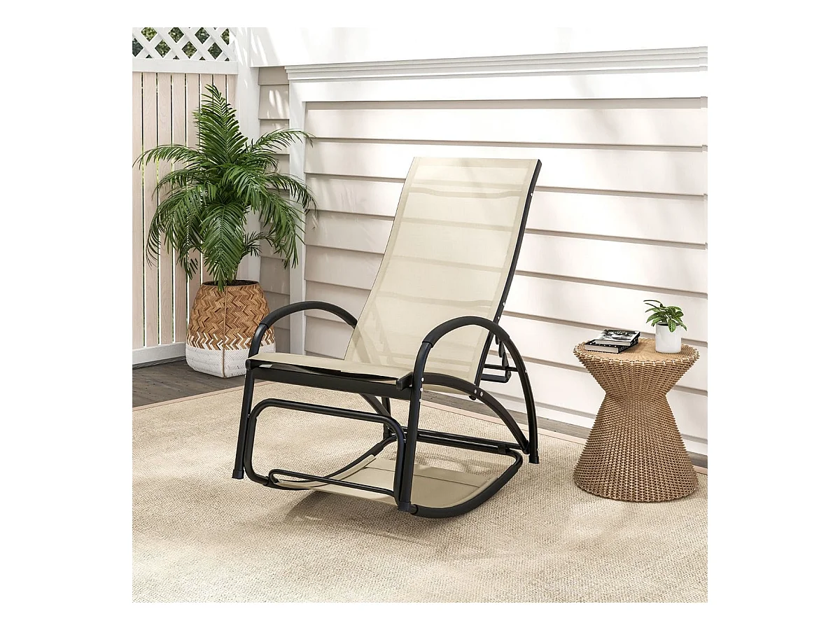 Chaise à Bascule d'Extérieur Chaise Longue Convertible Dossier Réglable à 4 Positions Accoudoirs Incurvés Cadre en Aluminium Beige