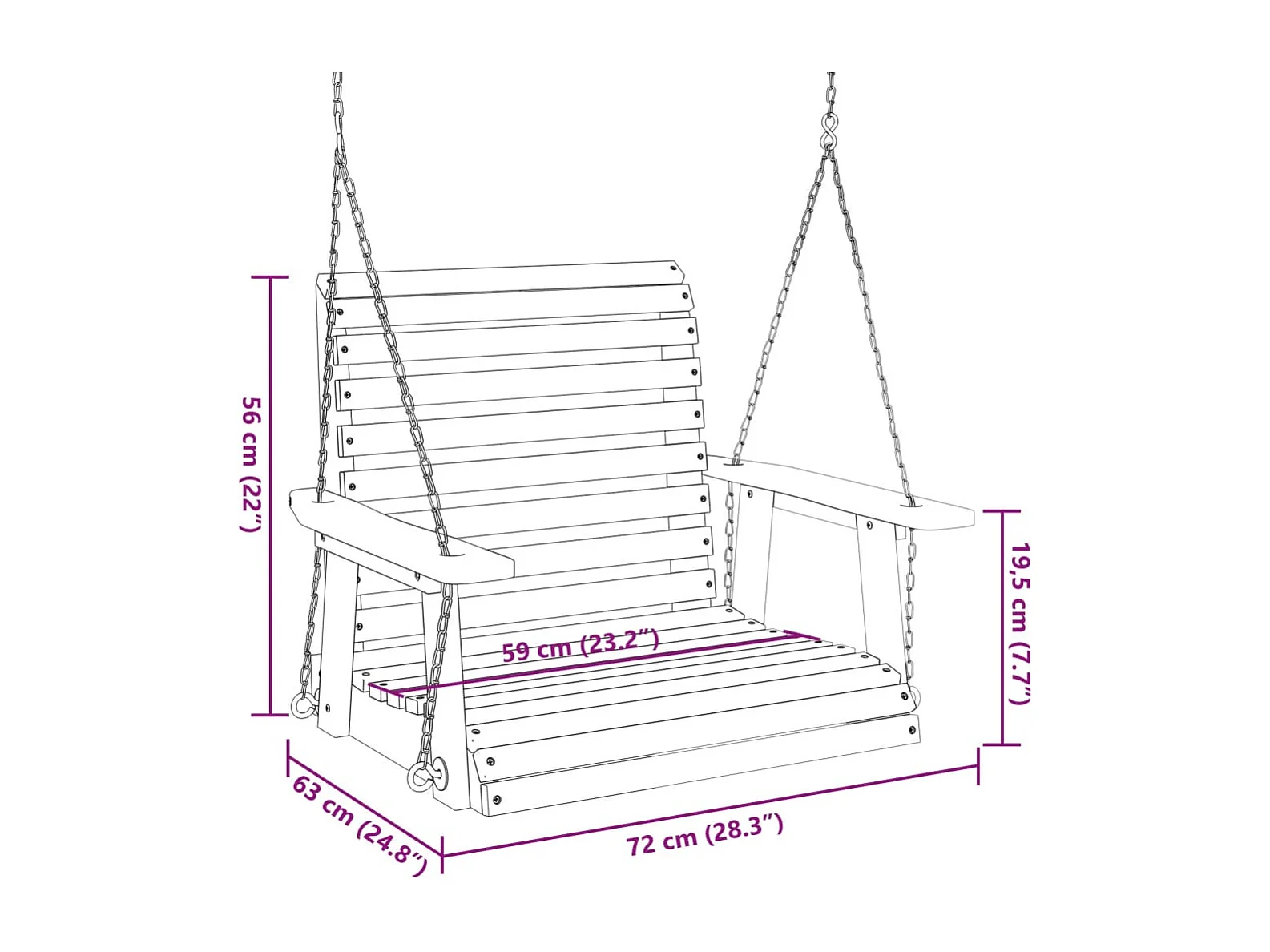 Chaise balançoire de jardin chaînes en métal bois massif sapin