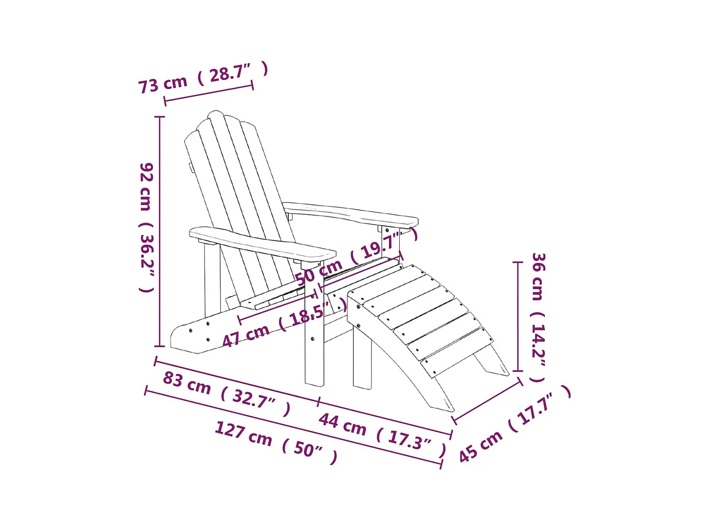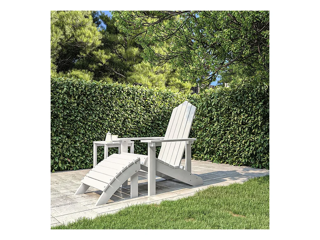 Chaise de jardin Adirondack repose-pied table PEHD Blanc