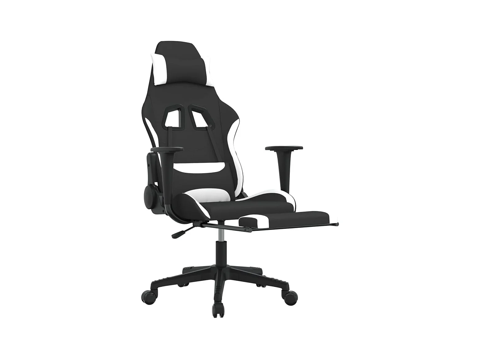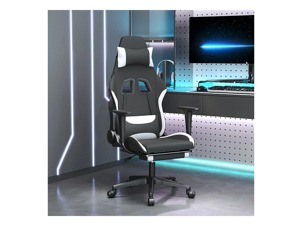 Chaise de jeu avec repose-pied Noir et blanc Tissu