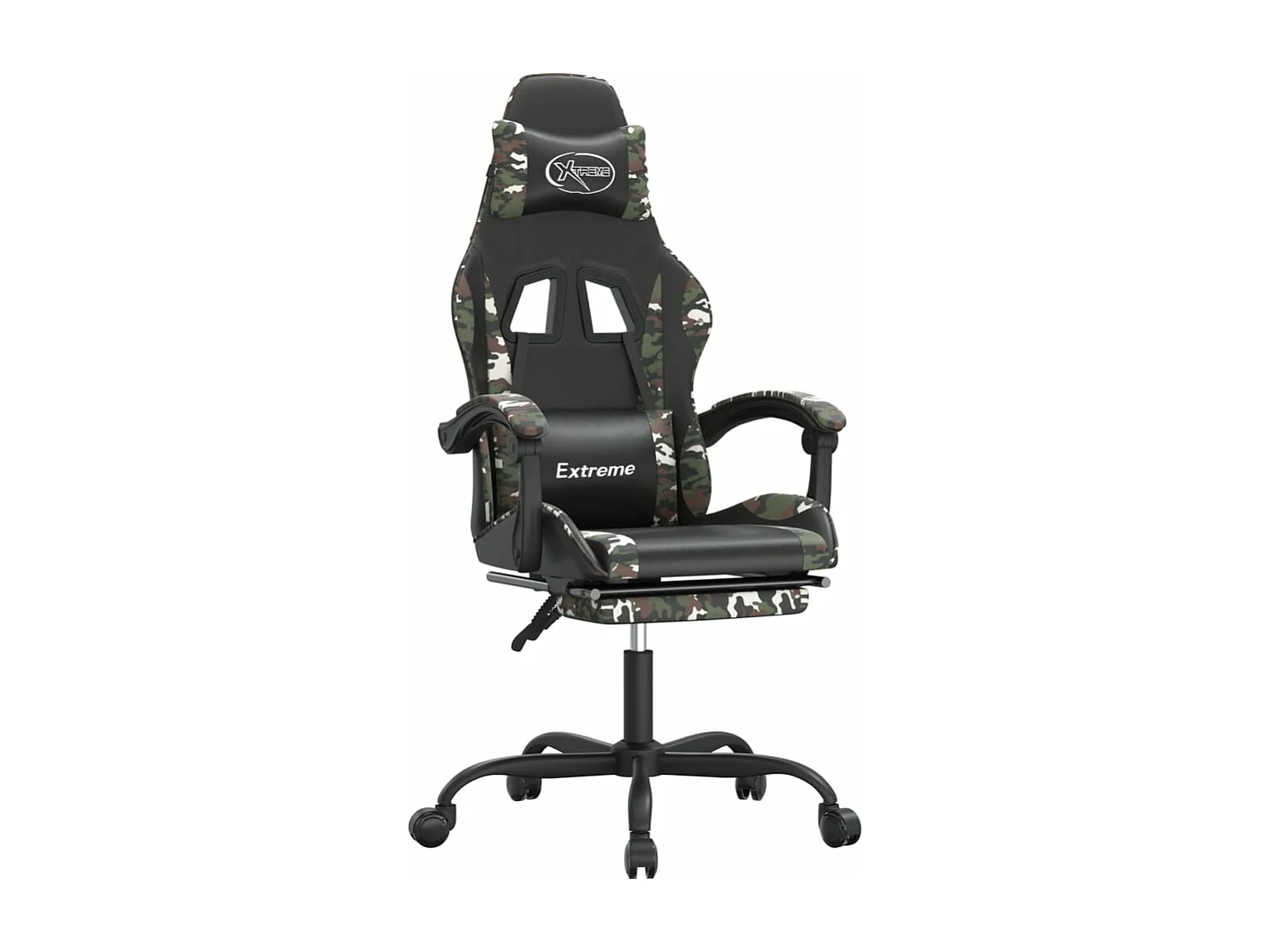 Chaise de jeu avec repose-pied Noir et camouflage Similicuir