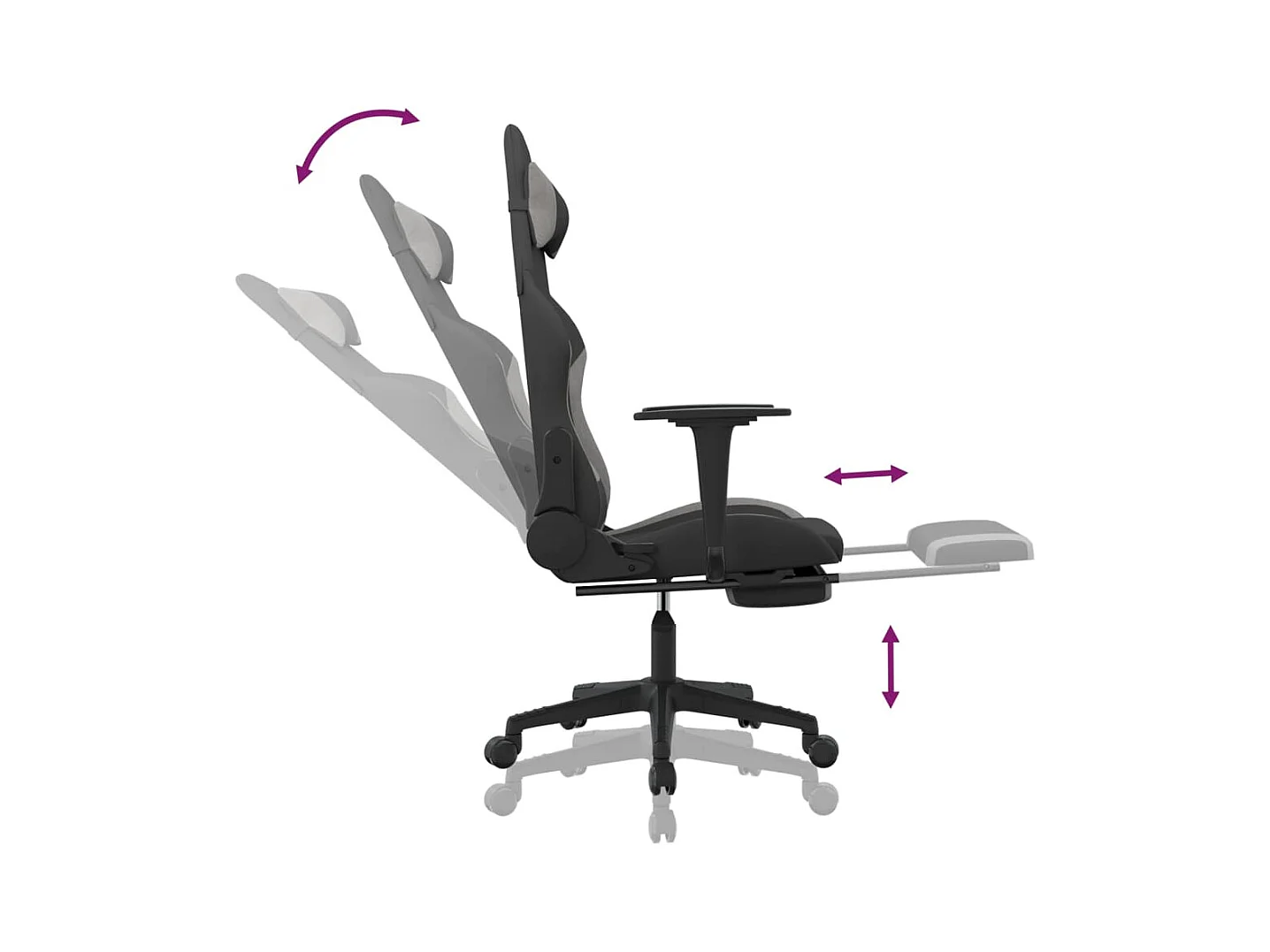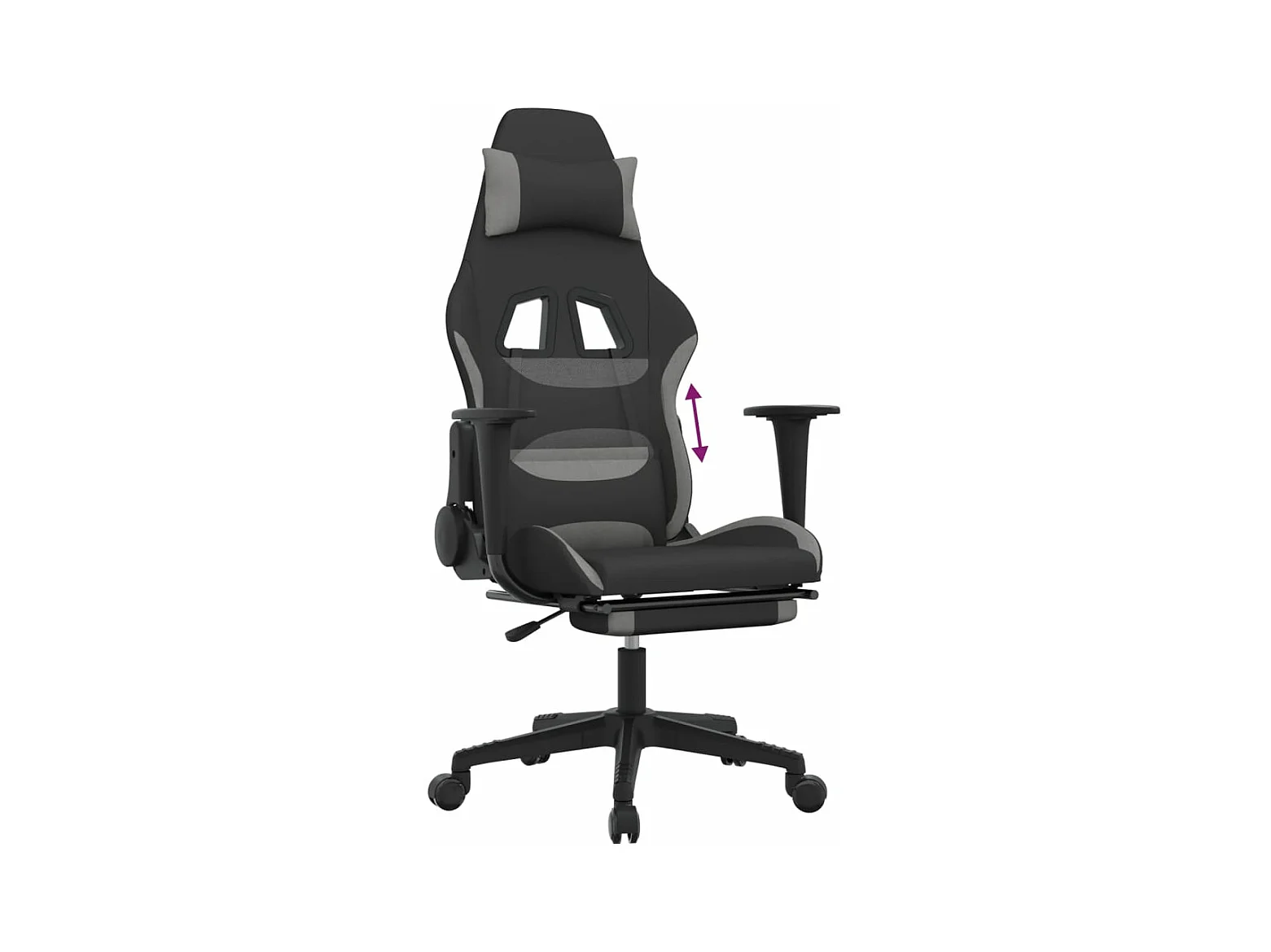 Chaise de jeu avec repose-pied Noir et gris clair Tissu