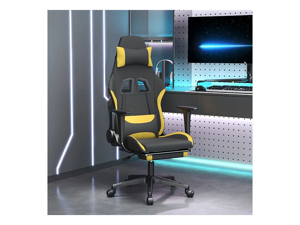 Chaise de jeu avec repose-pied Noir et jaune Tissu