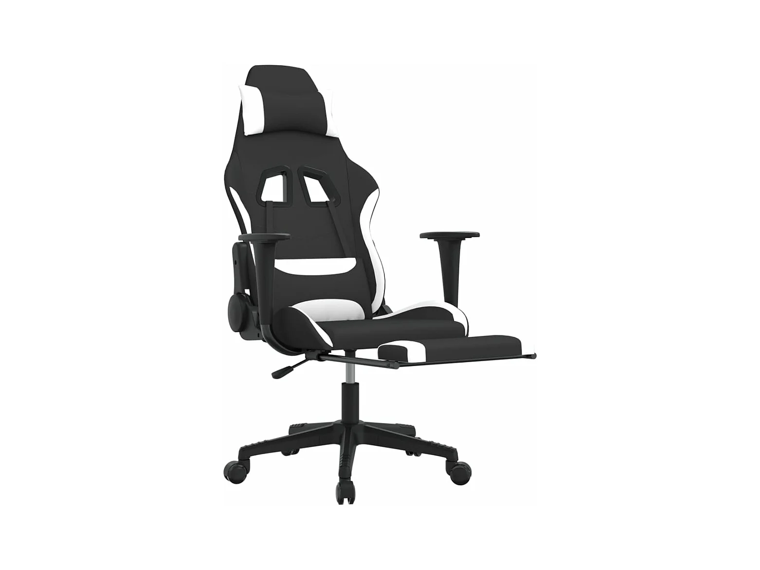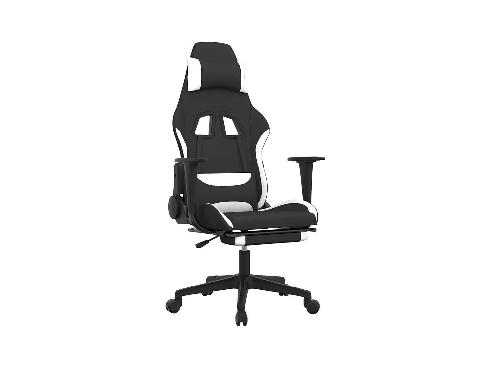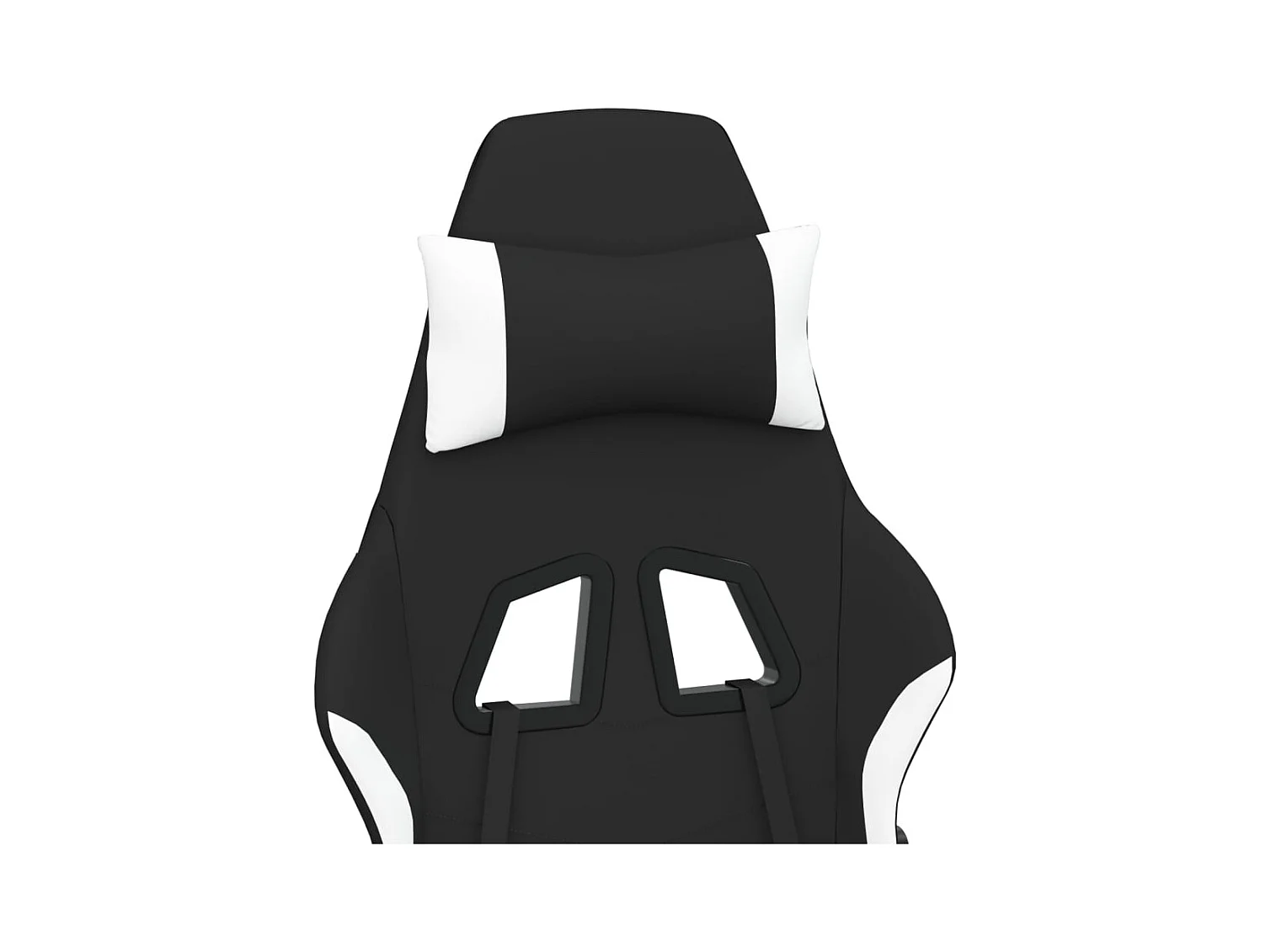 Chaise de jeu de massage avec repose-pied Noir et blanc Tissu