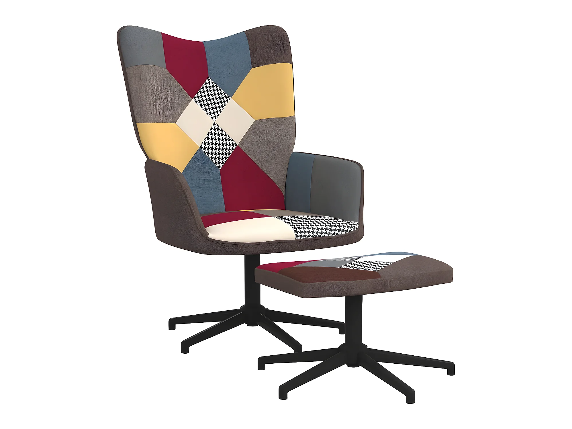 Chaise de relaxation avec repose-pied Patchwork Tissu