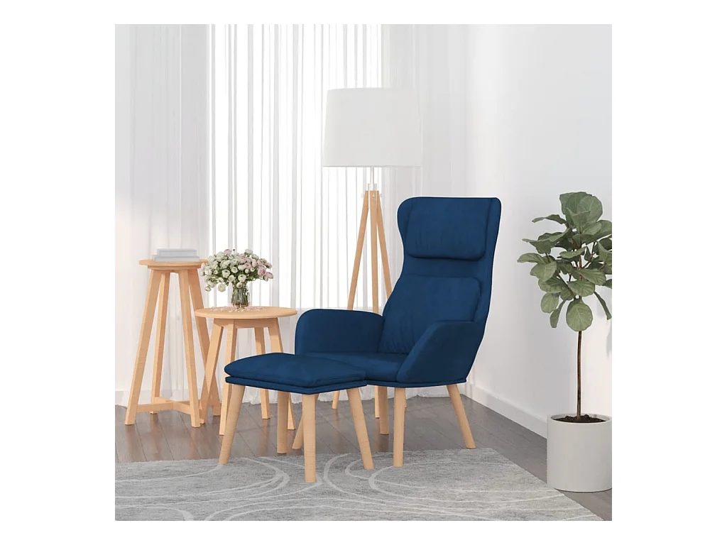 Chaise de relaxation avec tabouret Bleu Velours