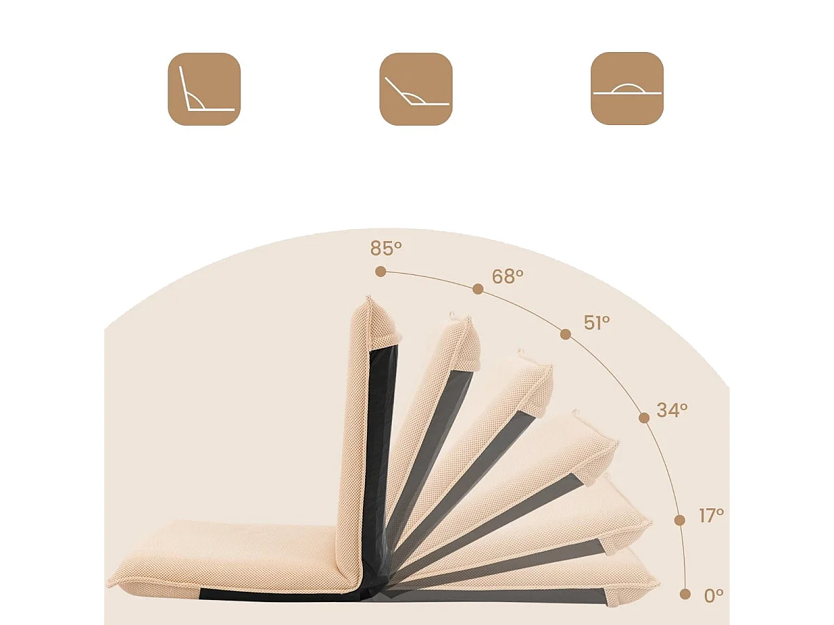 Chaise de Sol Pliable Tatami Inclinable en 6 Position 44 x 54,5 x 53,5 CM Marron