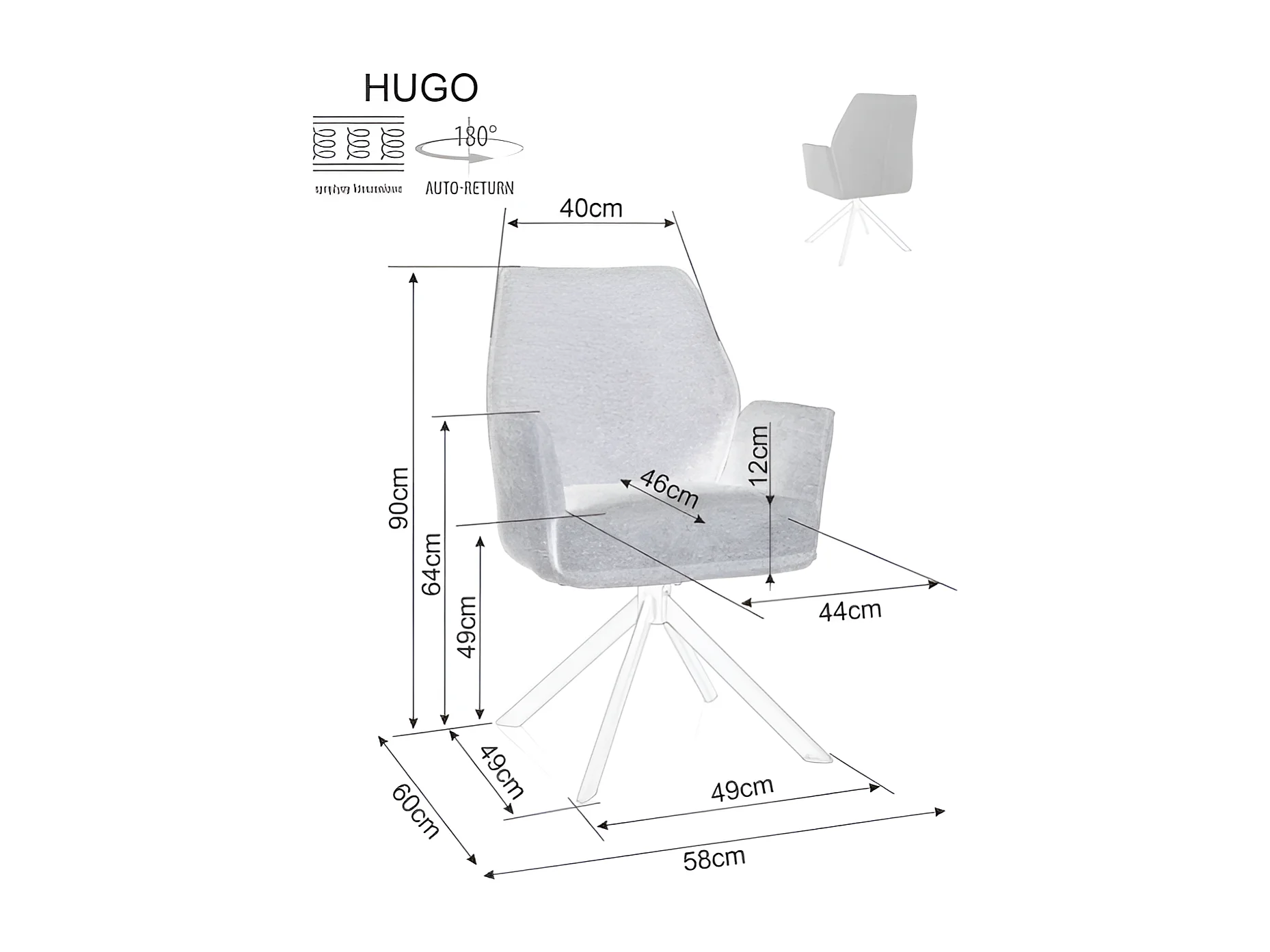 Chaise Hugo / revêtement en tissu / fonction pivotante à 180 degrés / beige