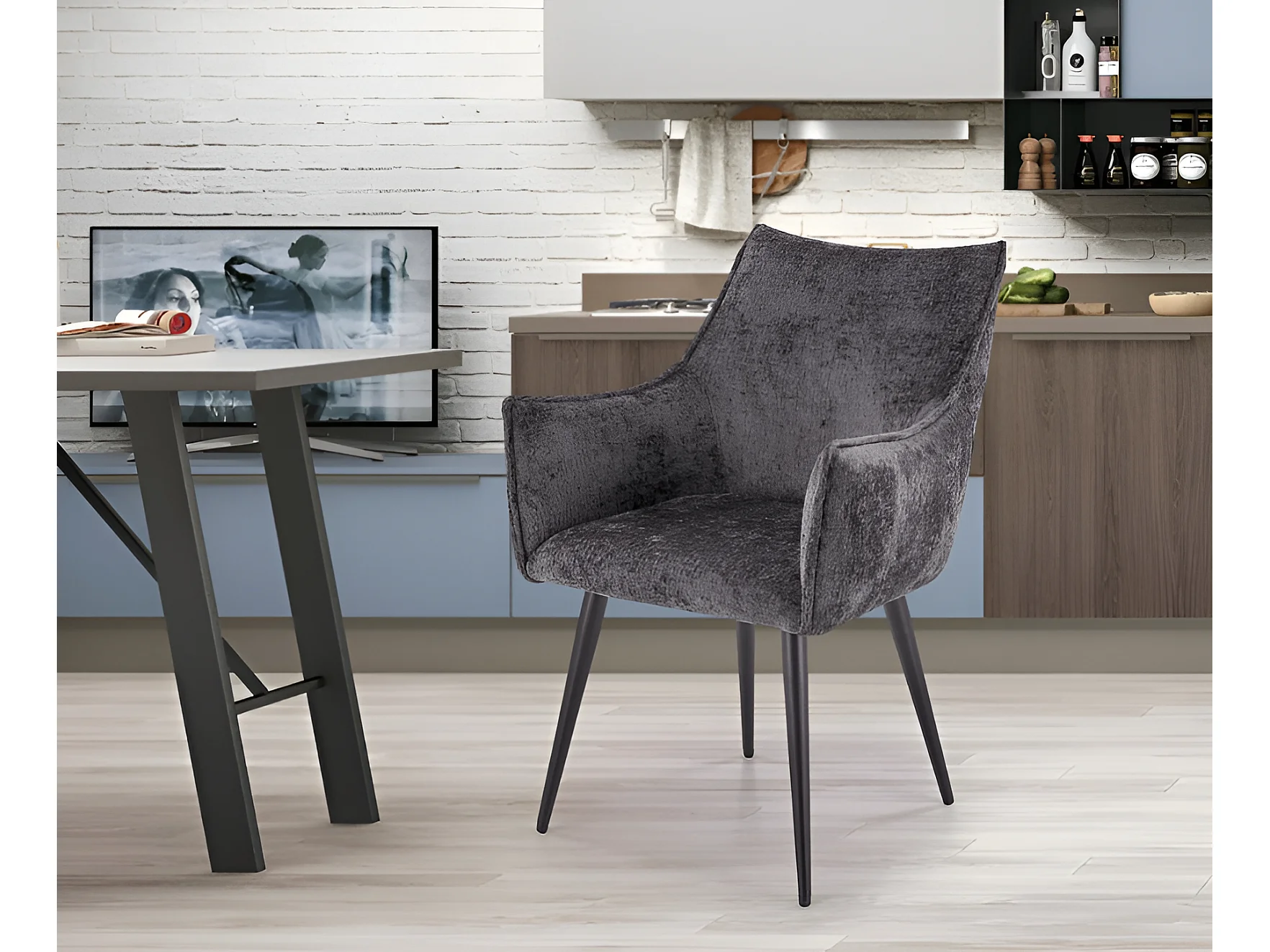 Chaise avec accoudoirs en tissu bouclette et bois d'hévéa naturel - Anthracite foncé - LIVELIA de Pascal MORABITO