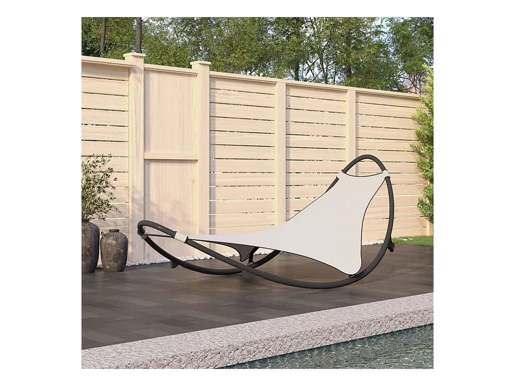 Chaise longue à bascule avec roues Acier et textilène Crème