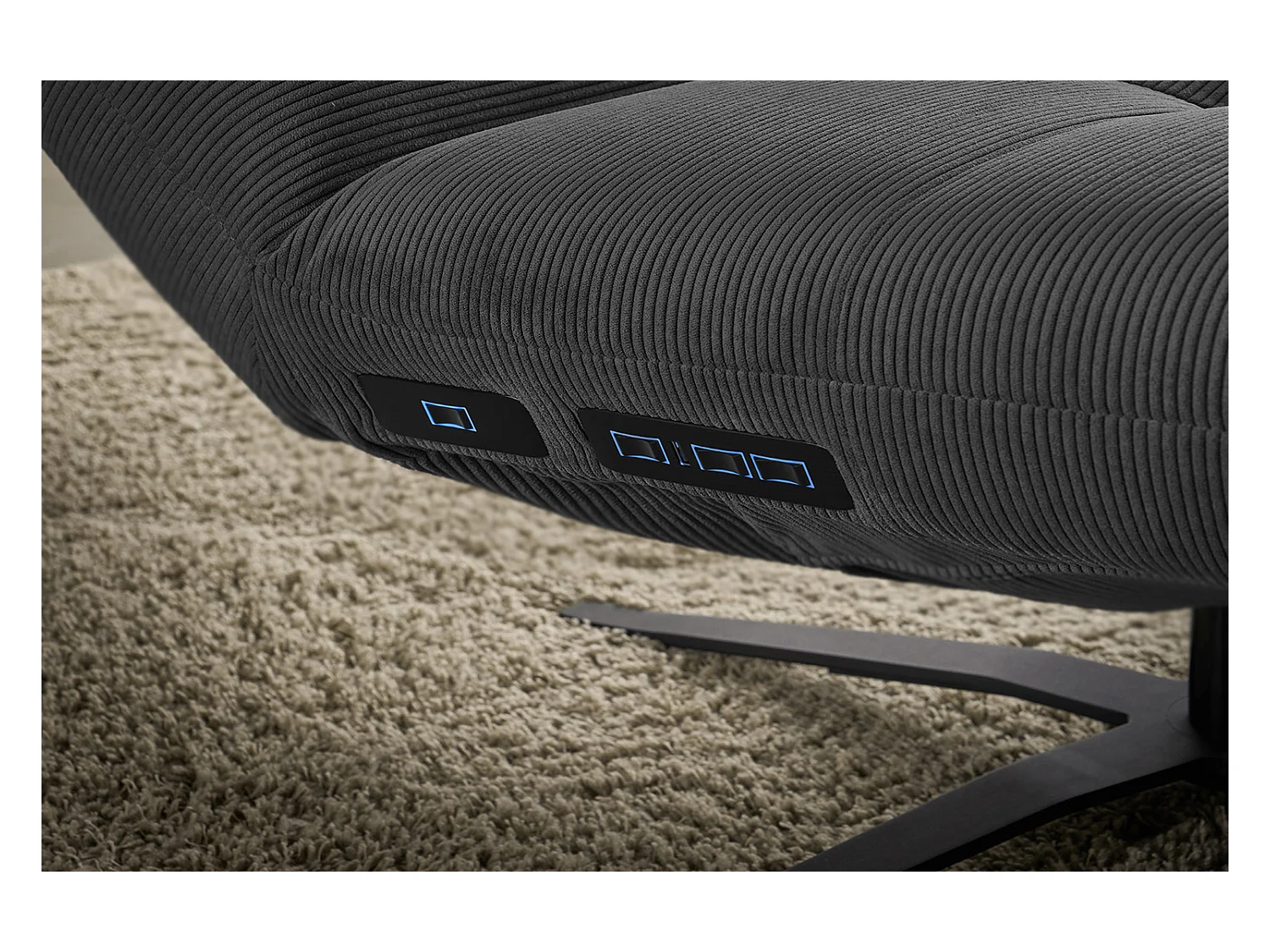 Chaise longue - anthracite Velours côtelé - LETICIA