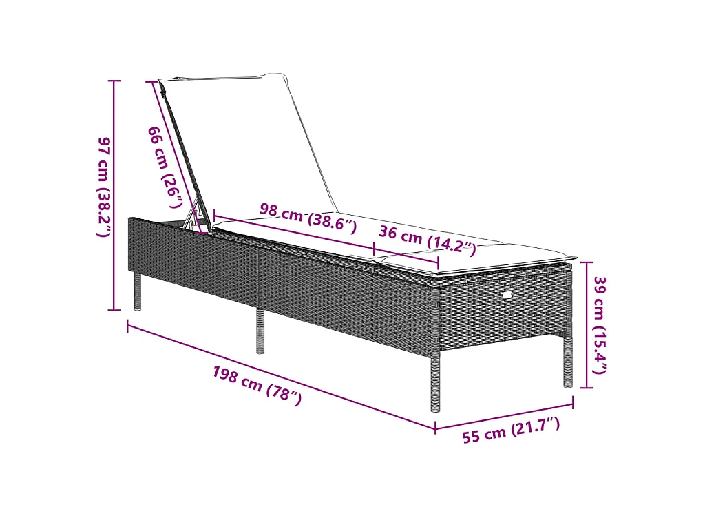 Chaise longue avec coussin gris clair résine tressée