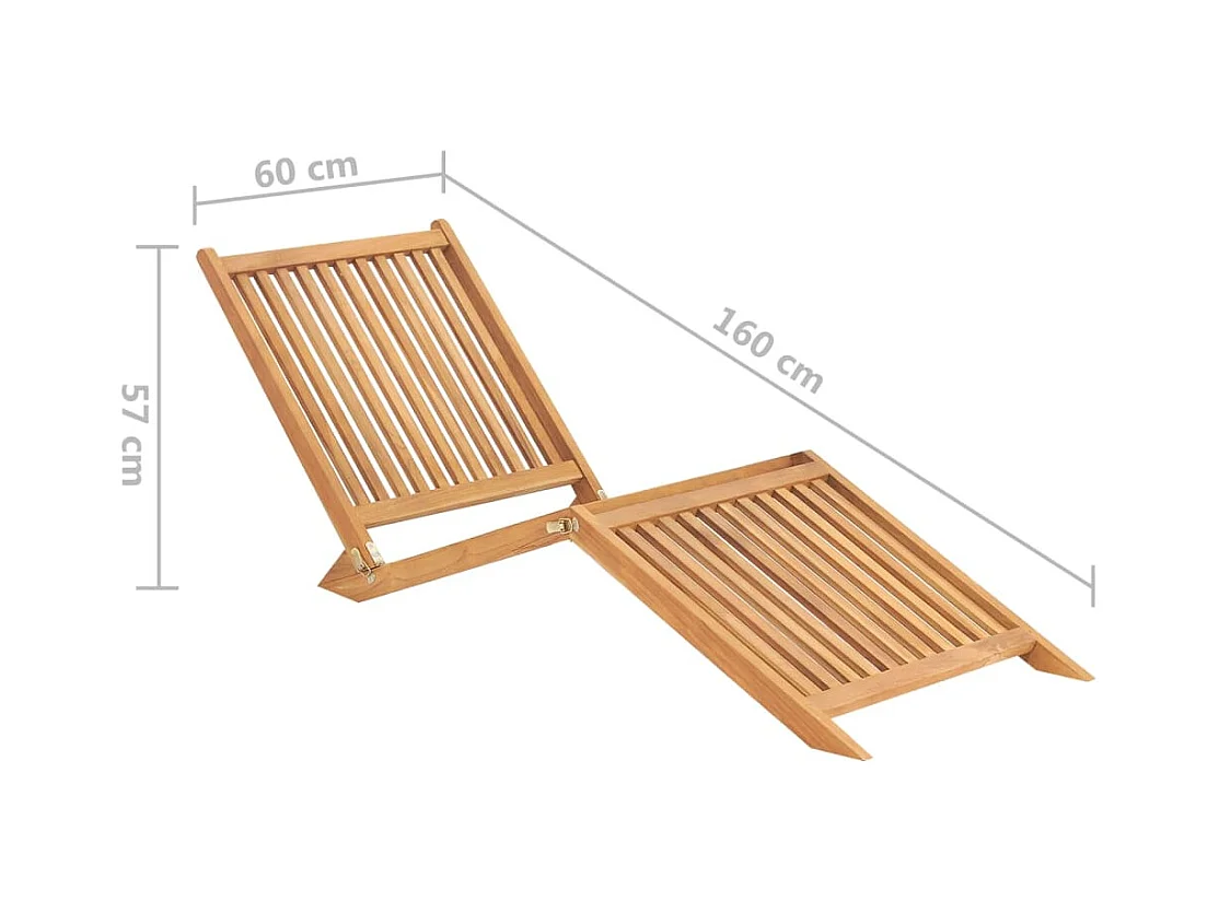 Chaise longue pliable avec roulettes Teck massif et textilène