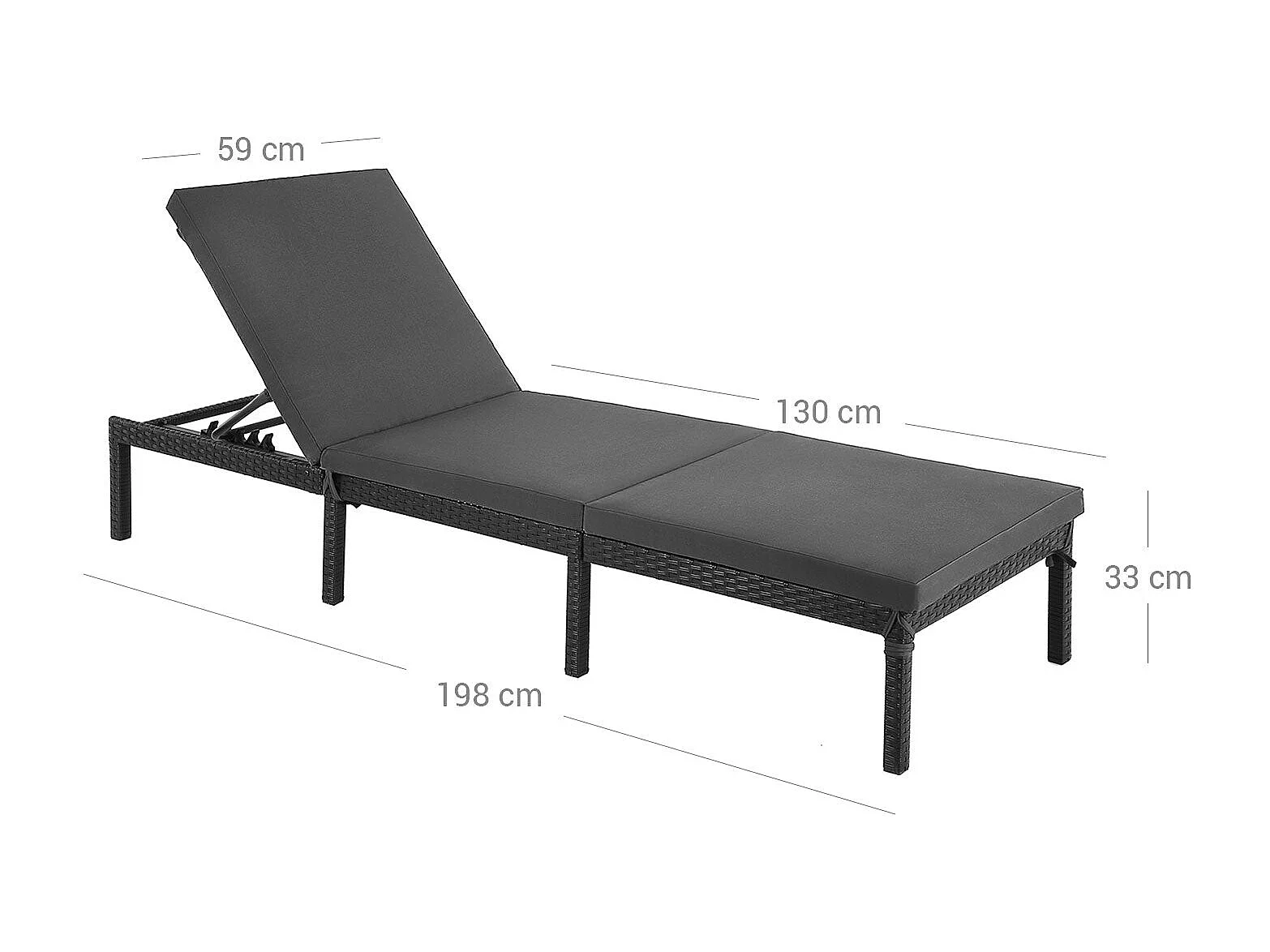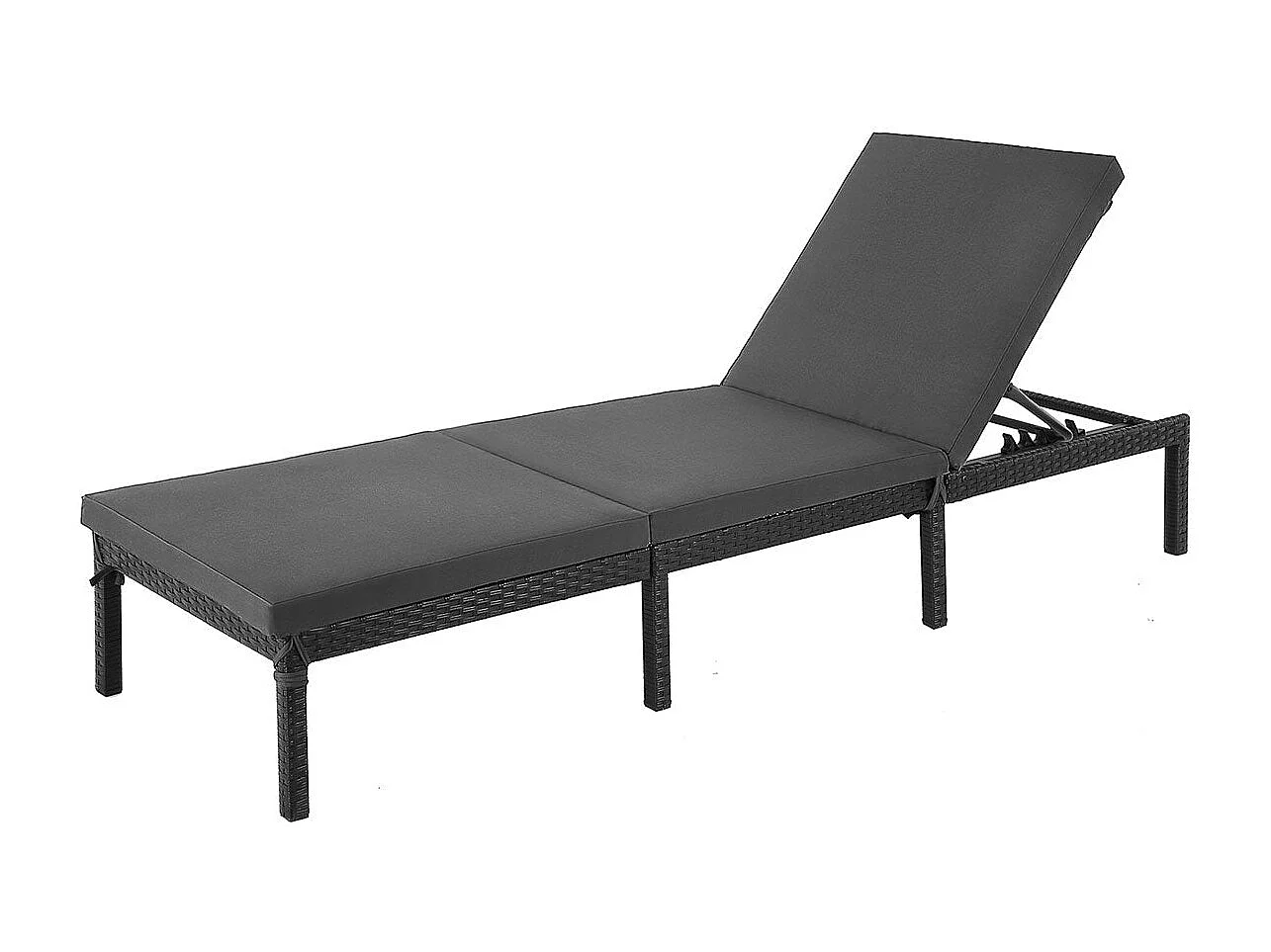 Chaise longue avec coussin noir 60x205x73 cm résine tressée