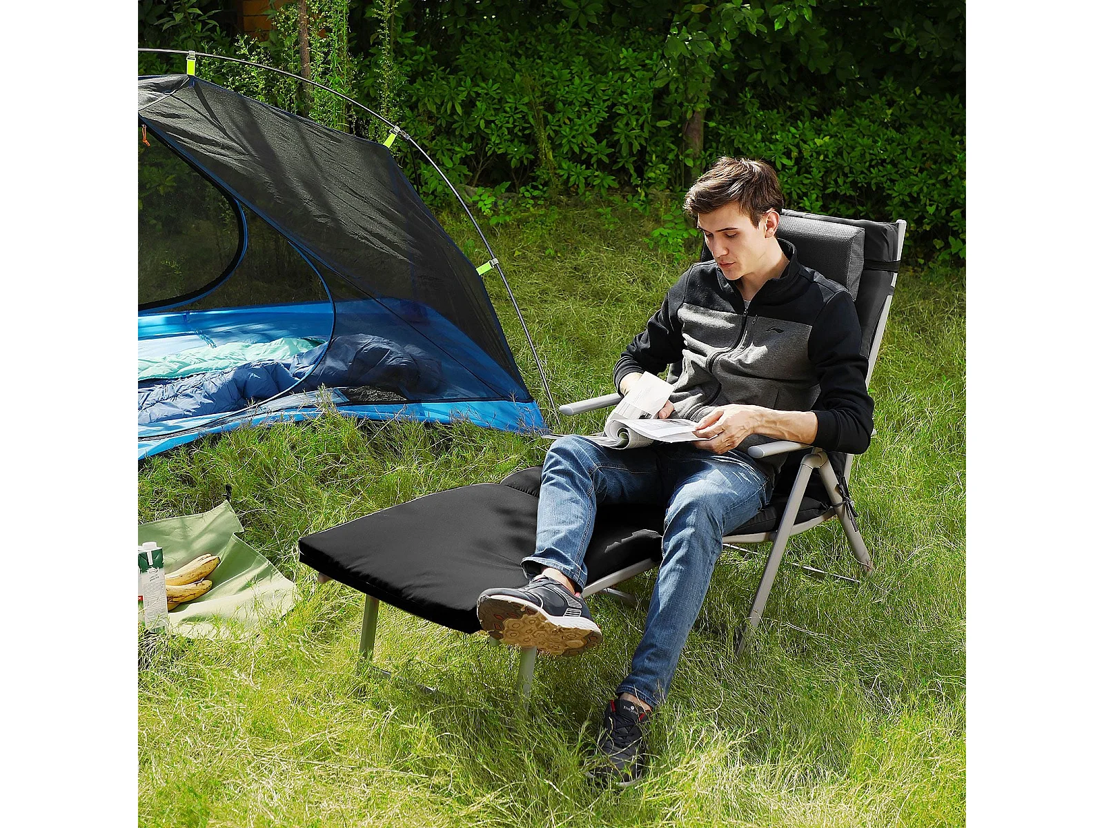 Chaise à Bascule d'Extérieur Chaise Longue Convertible Dossier Réglable à 4 Positions Accoudoirs Incurvés Cadre en Aluminium Noir
