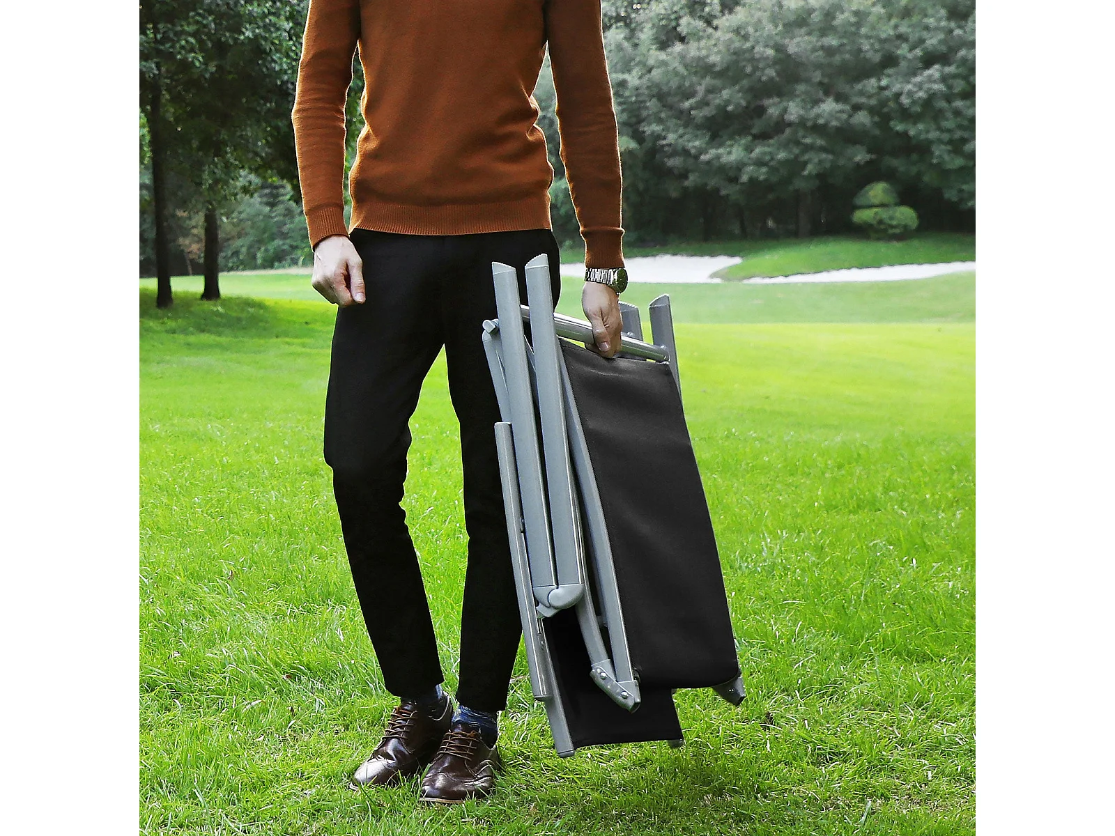Chaise longue pliante noir tissu oxford acier enduit de poudre