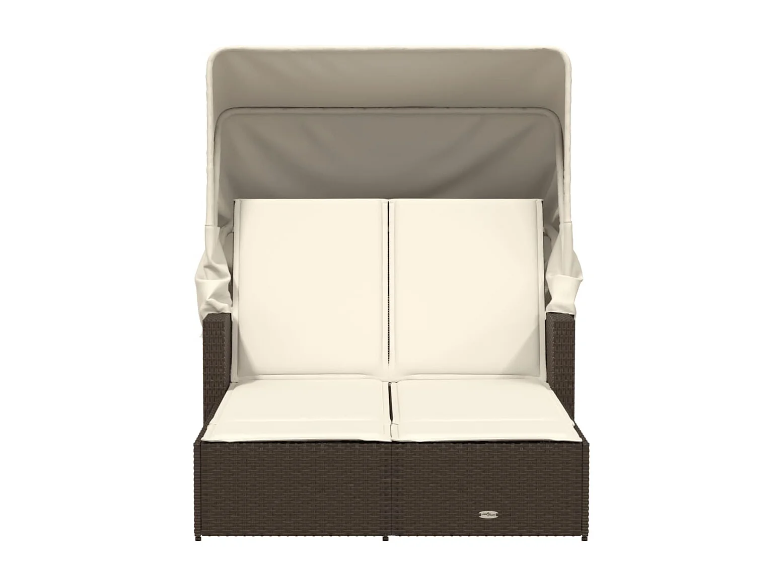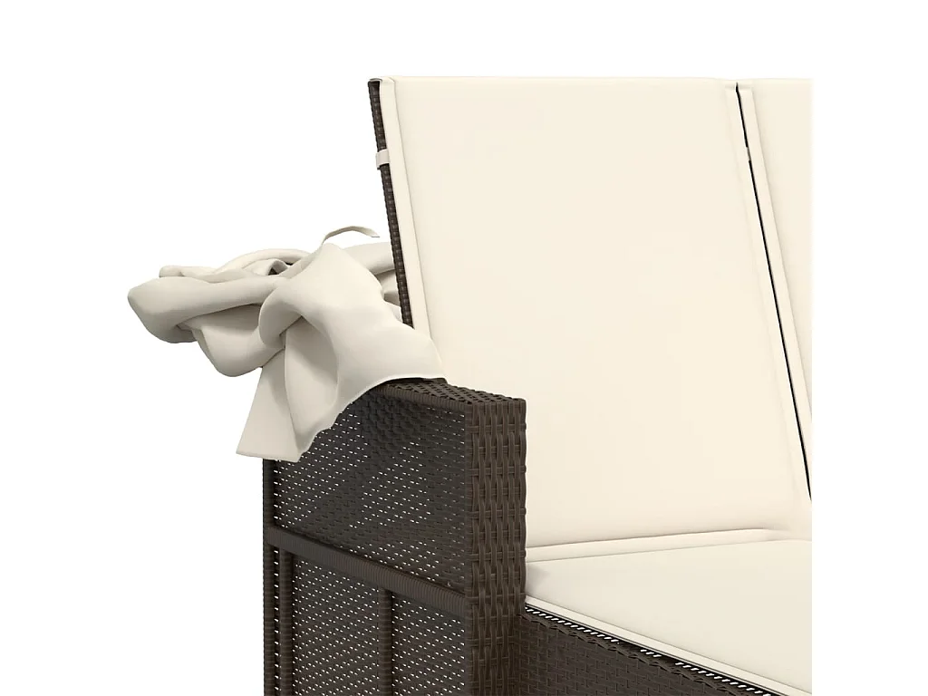 Chaise longue double avec auvent et coussins marron poly rotin