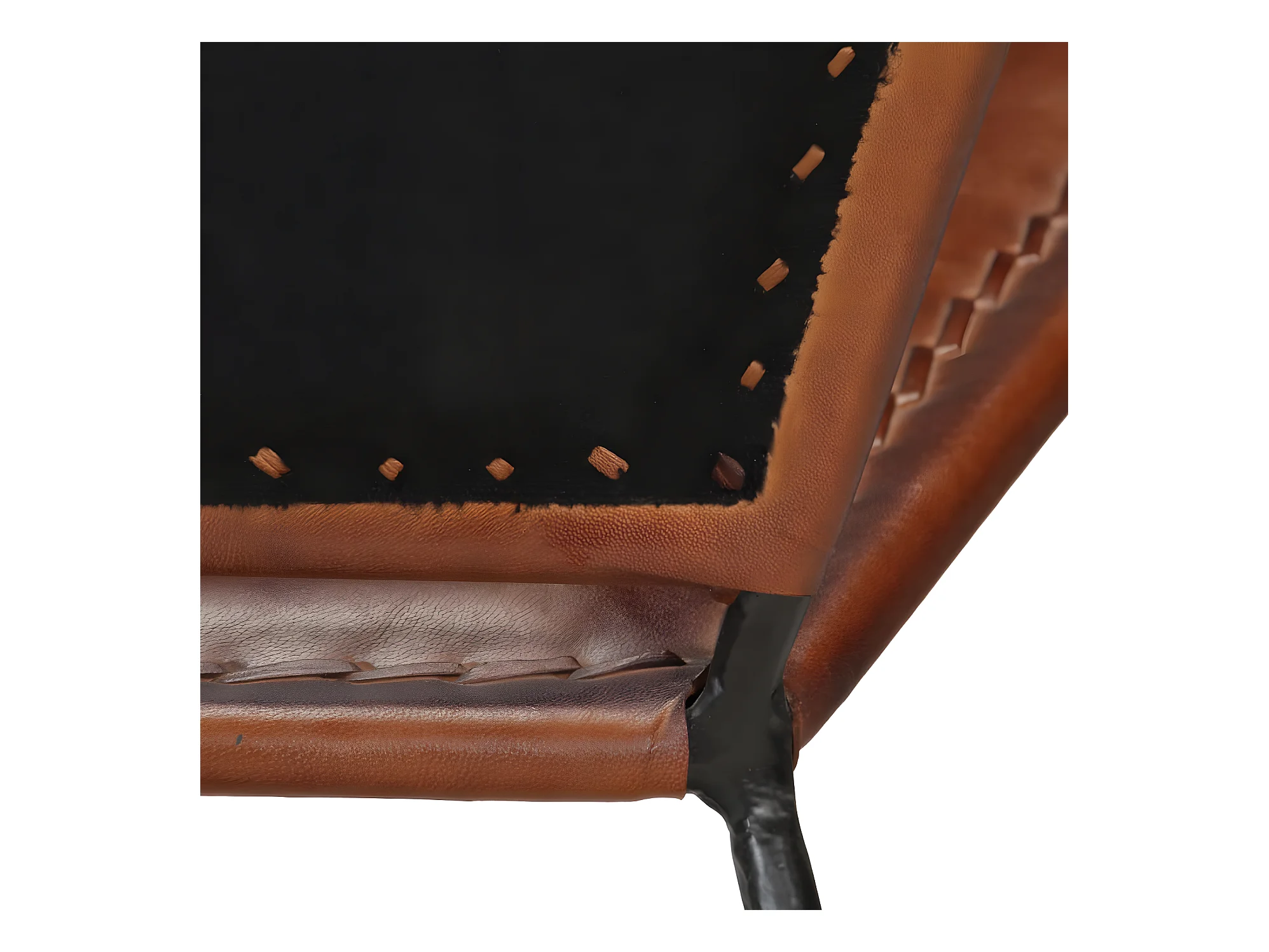 Fauteuil Blanc et marron Cuir véritable de chèvre