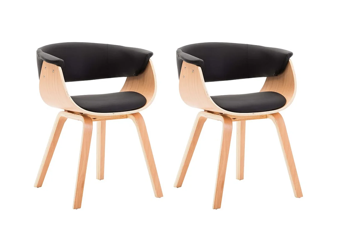Chaises à manger lot de 2 noir bois courbé et similicuir