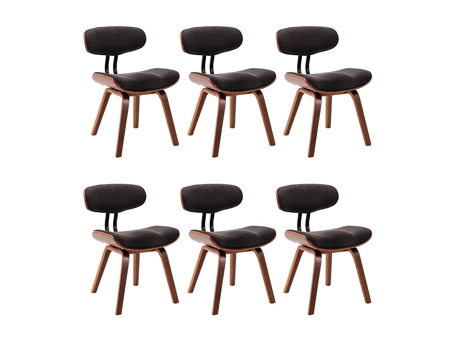 Chaises à manger lot de 6 gris bois courbé et tissu