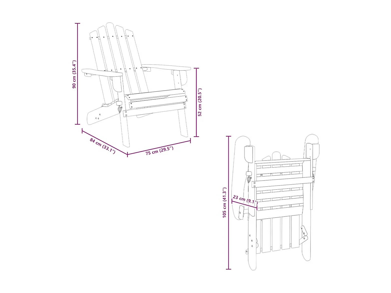 Chaises Adirondack de jardin repose-pieds lot de 2 Bois acacia