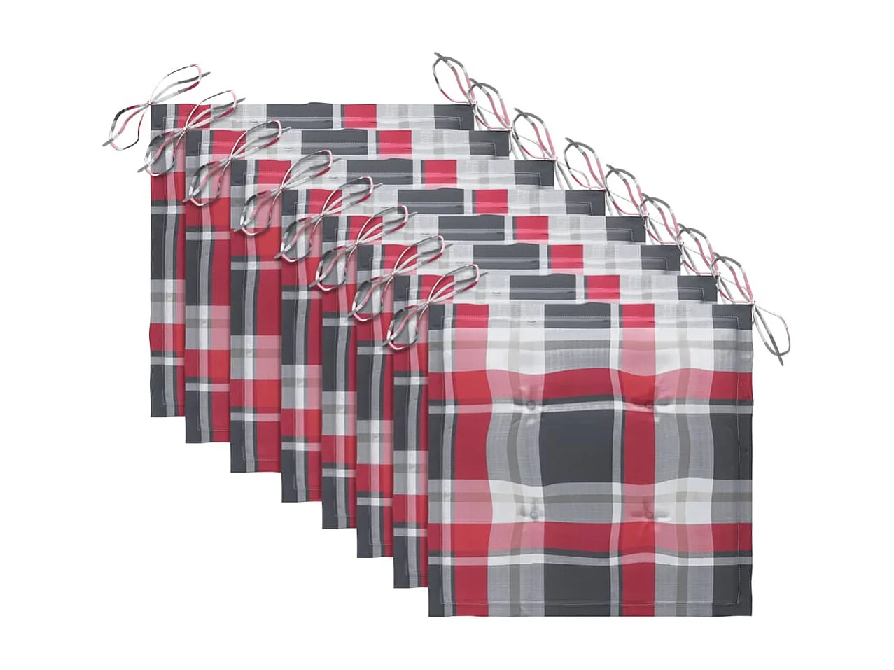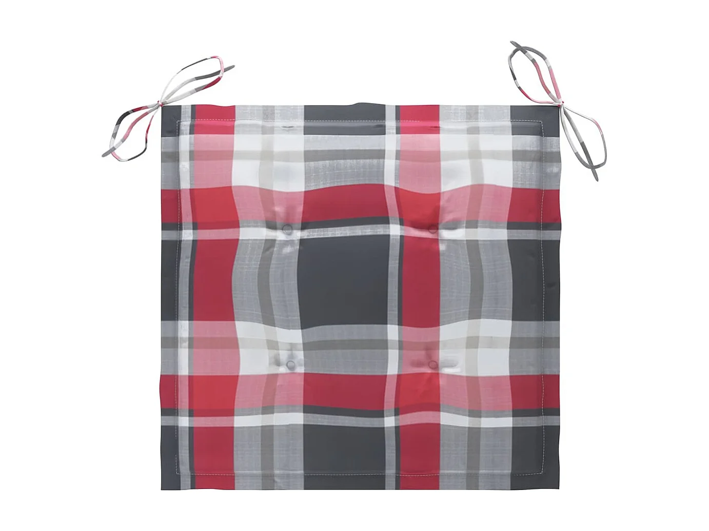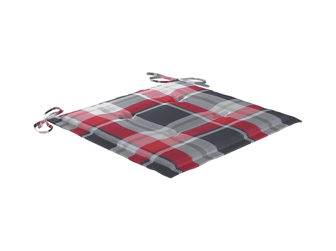 Chaises de jardin 8 pcs et coussins carreaux rouge Bois de teck