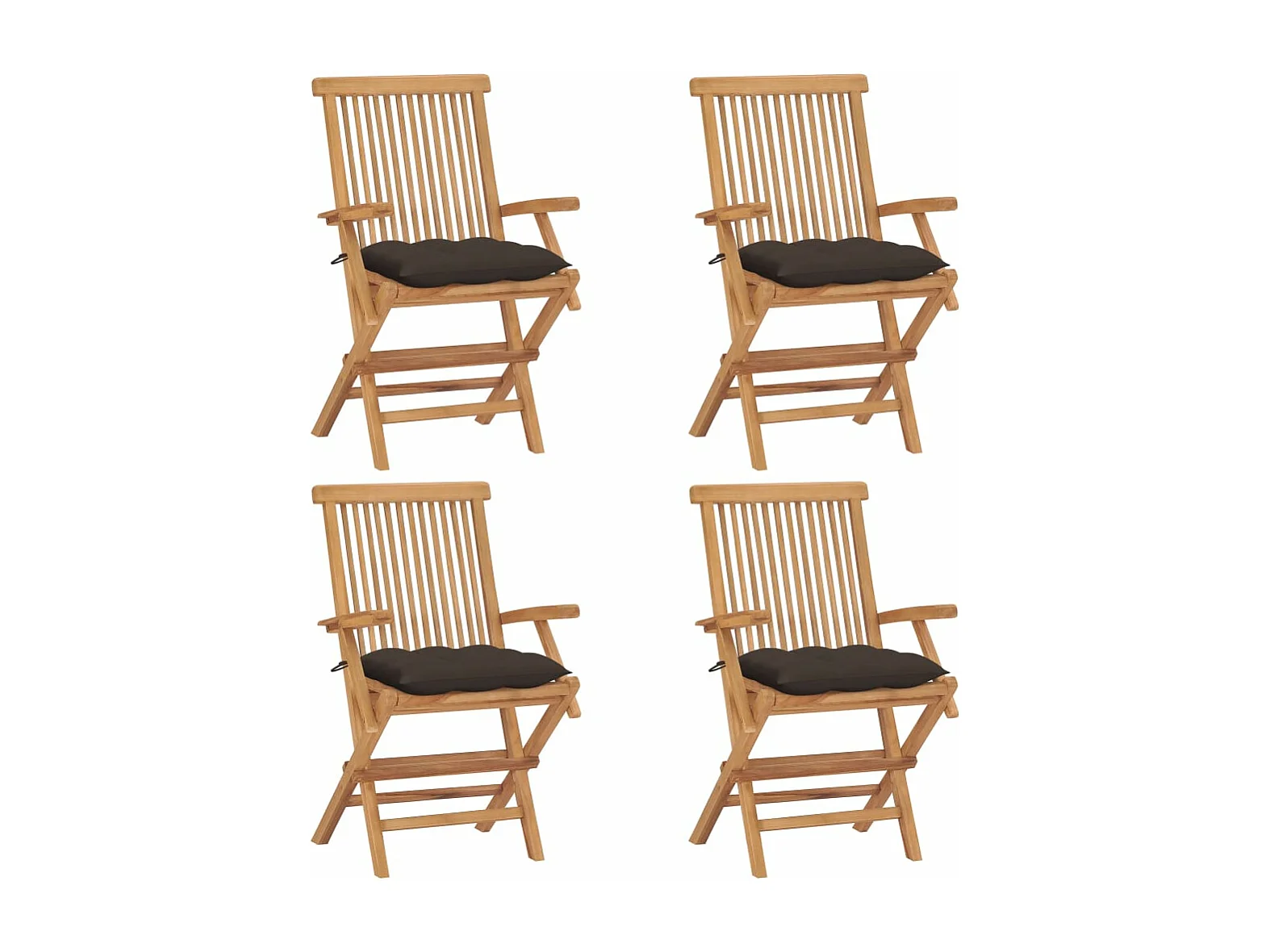 Chaises de jardin avec coussins taupe 4 pcs Bois de teck massif