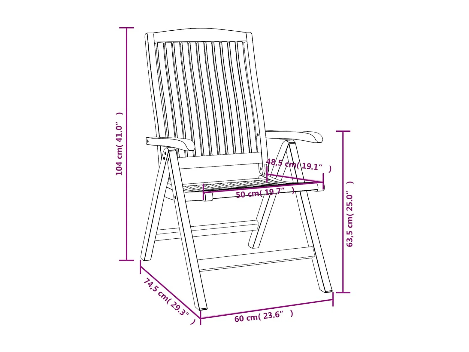 Chaises de jardin inclinables lot de 2 et coussins teck massif
