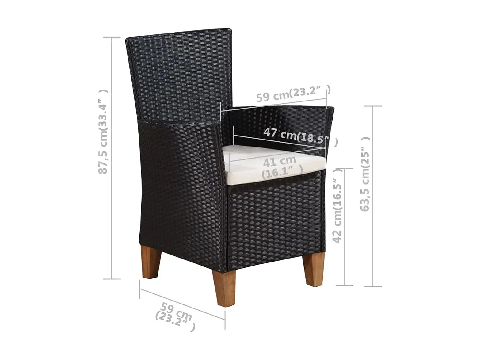 Chaises d'extérieur lot de 2 avec coussins Résine tressée Noir