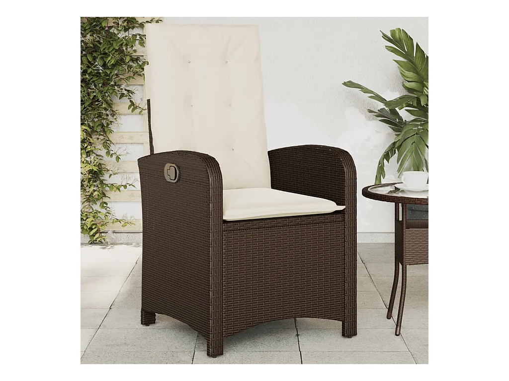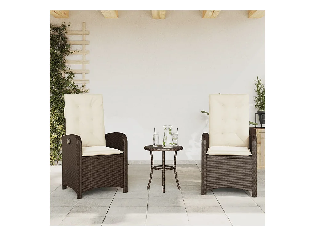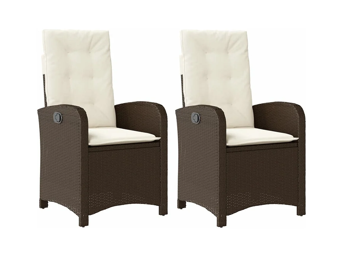 Chaises inclinables de jardin lot de 2 et coussins marron rotin